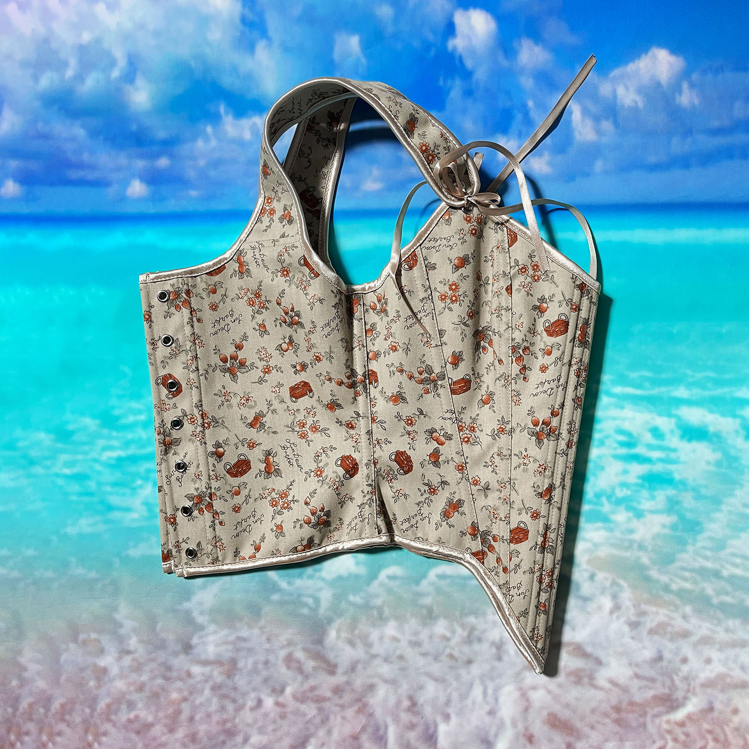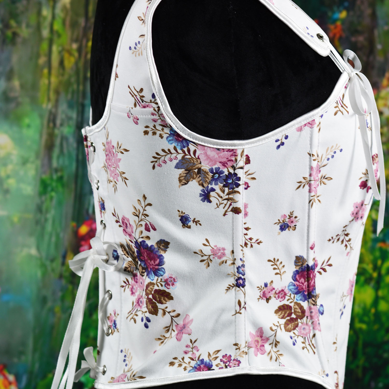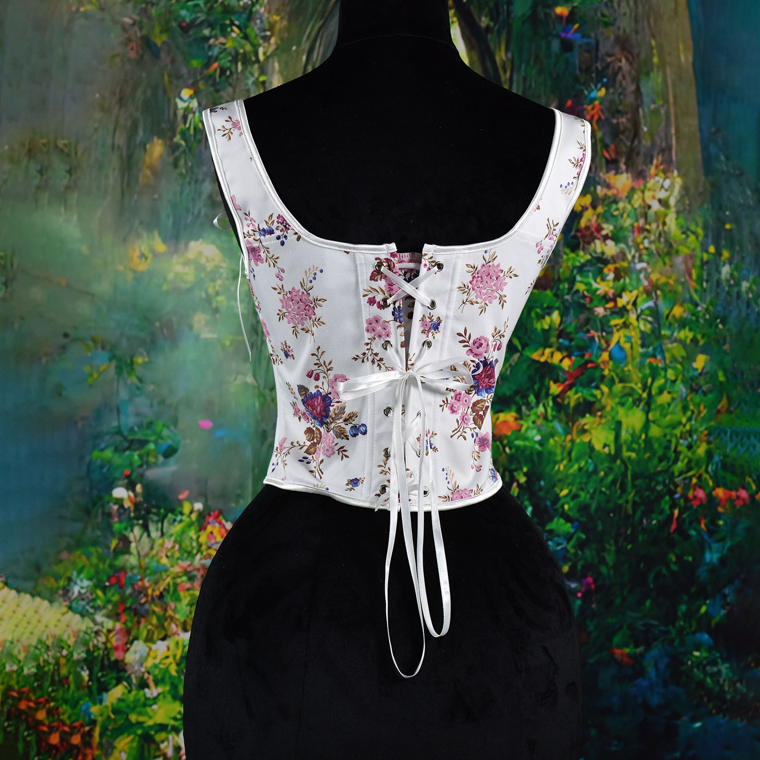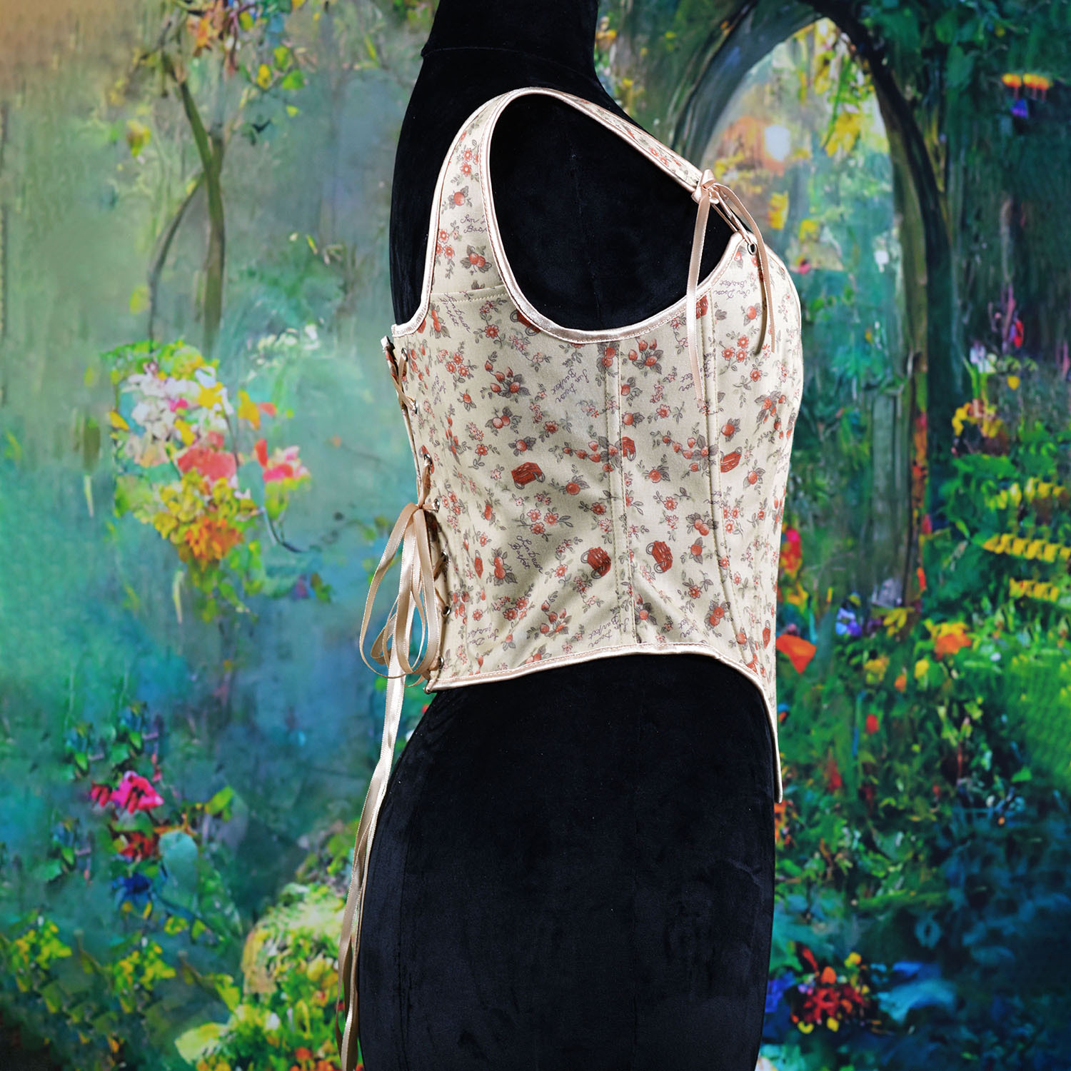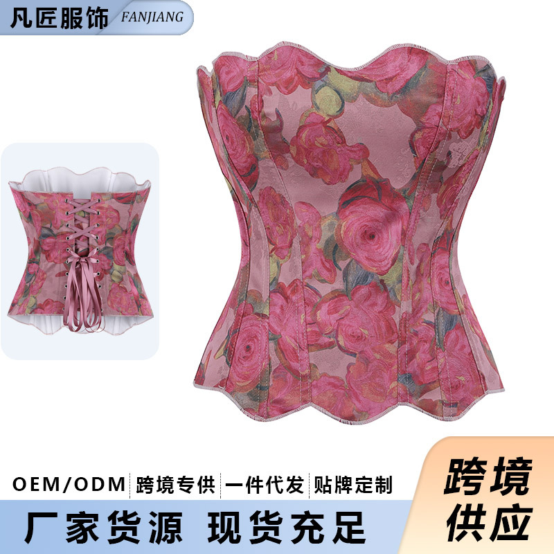 跨境新款复古抹胸胸衣油画花朵印花不规则瘦身塑形外穿塑身上衣