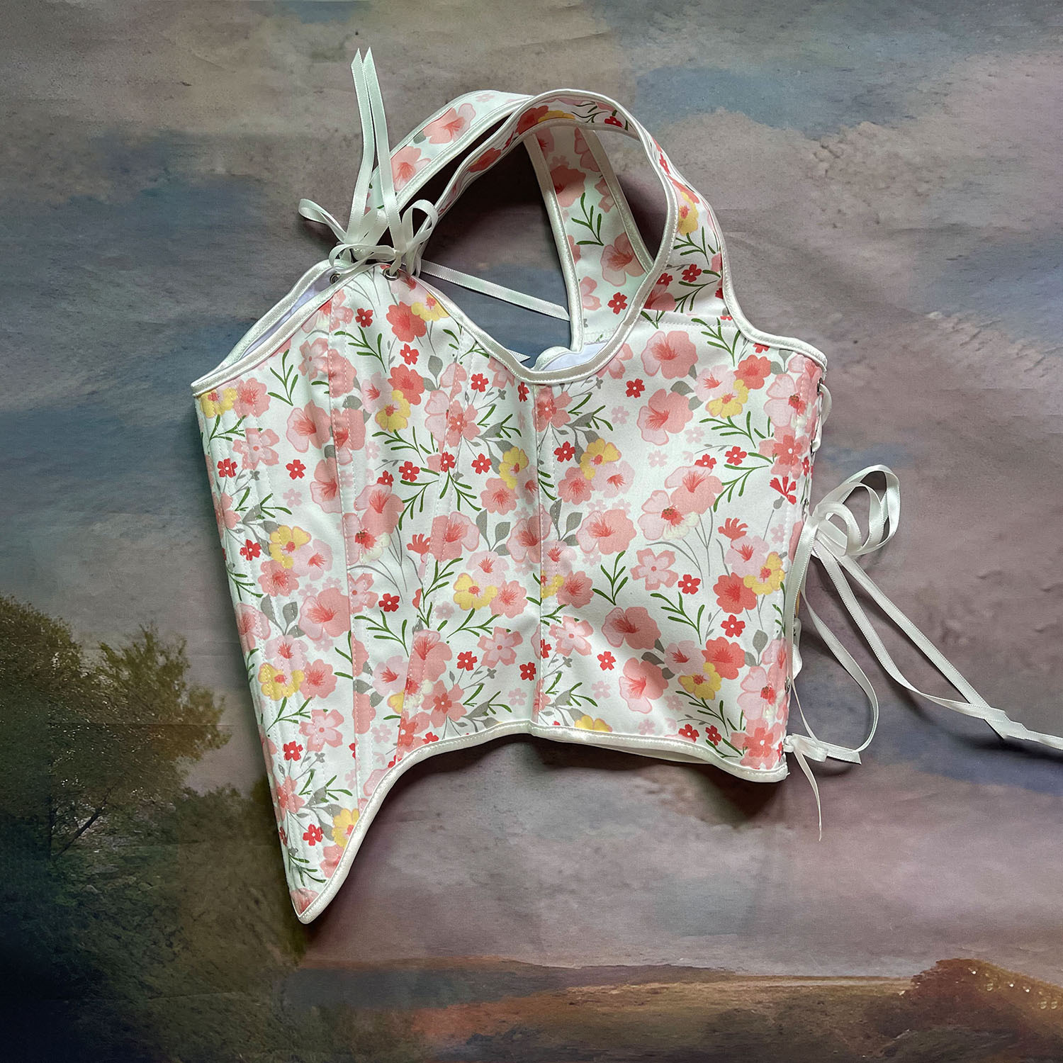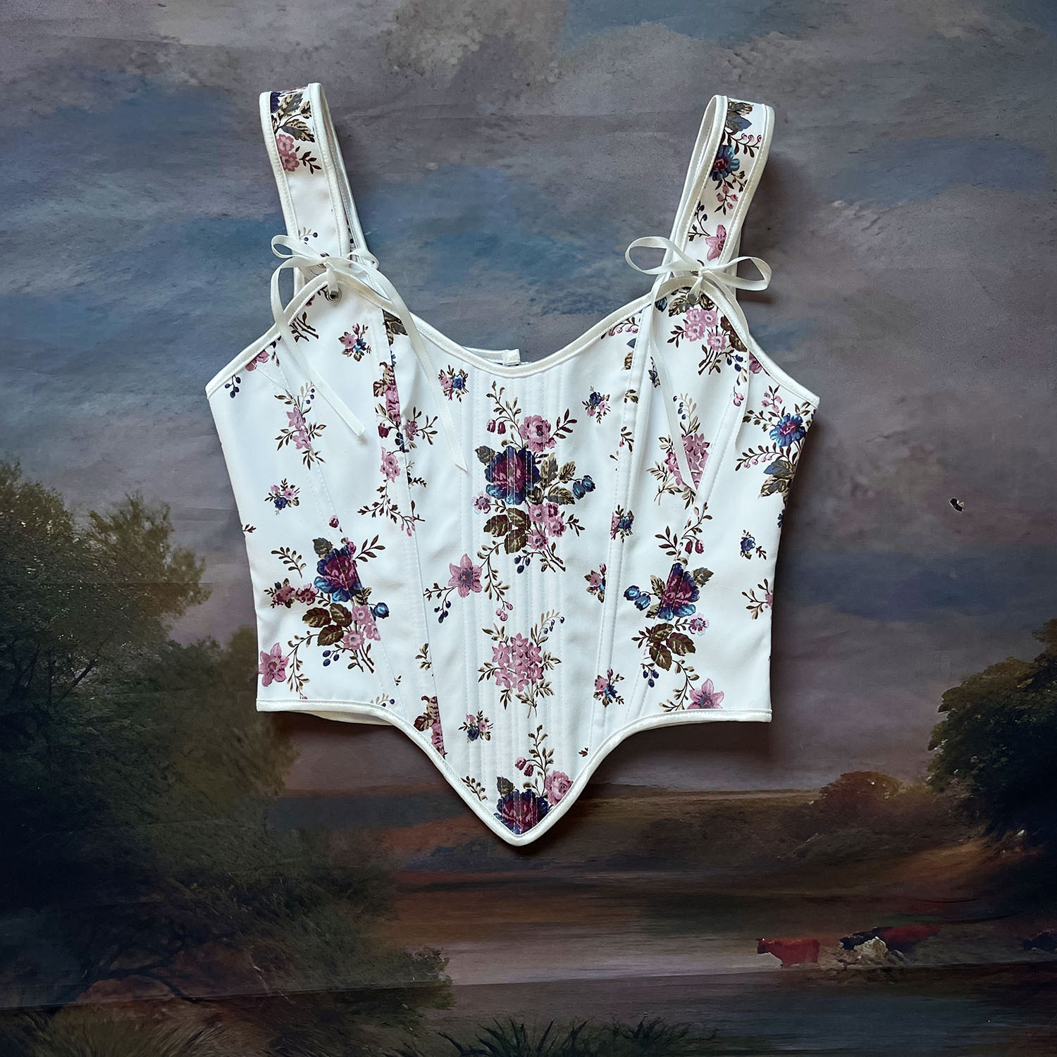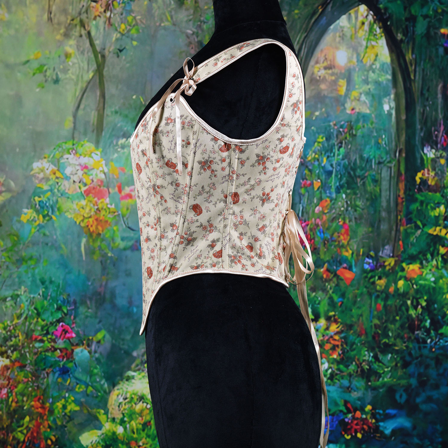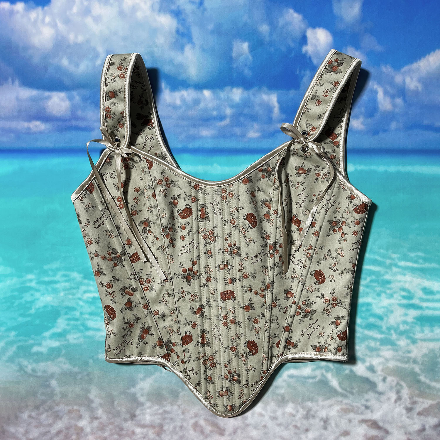 跨境新款复古抹胸胸衣油画花朵印花不规则瘦身塑形外穿塑身上衣