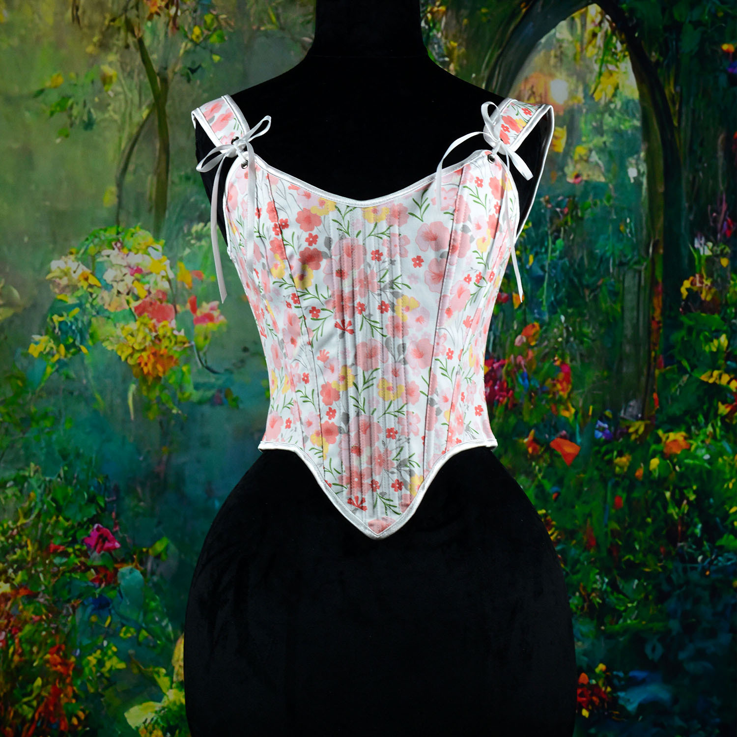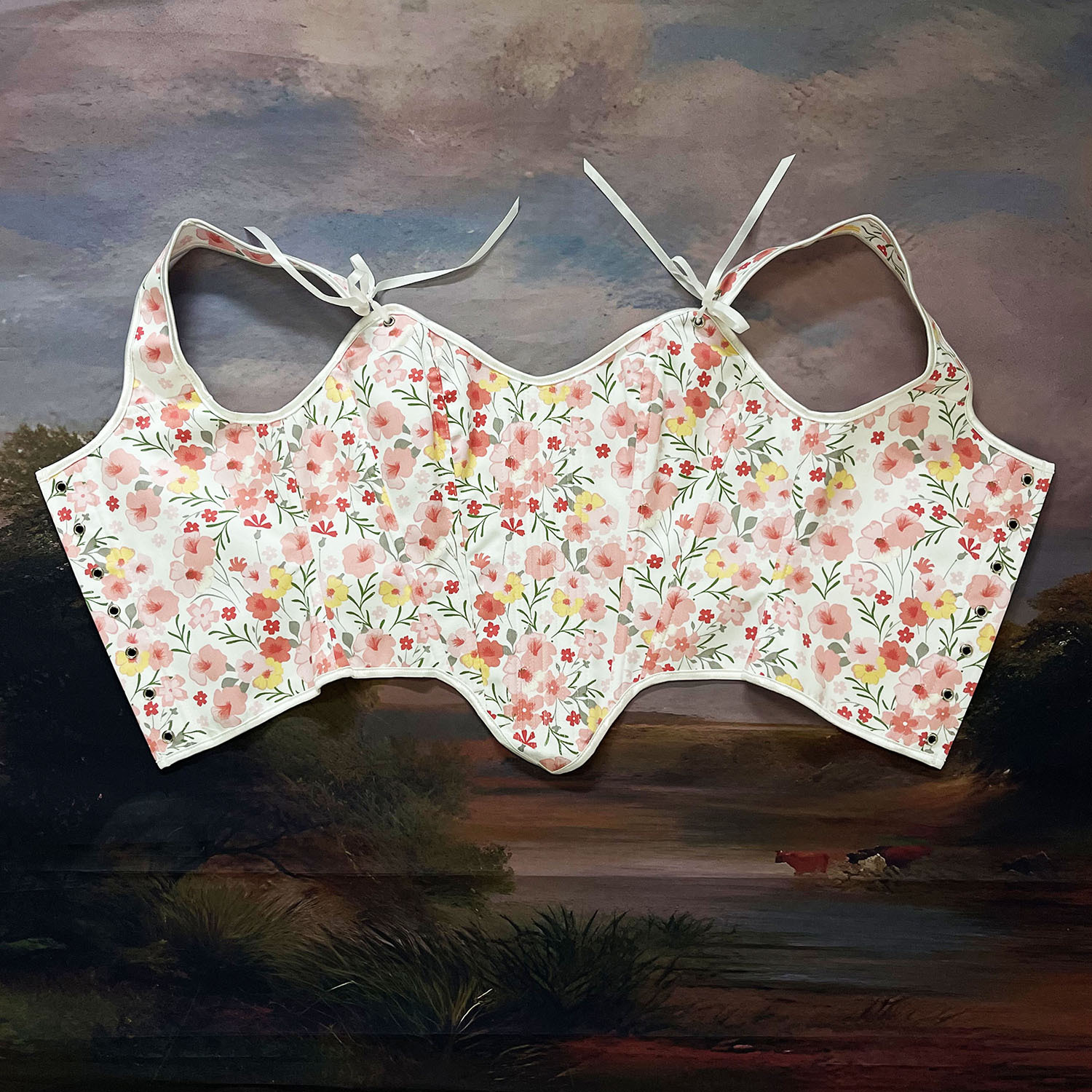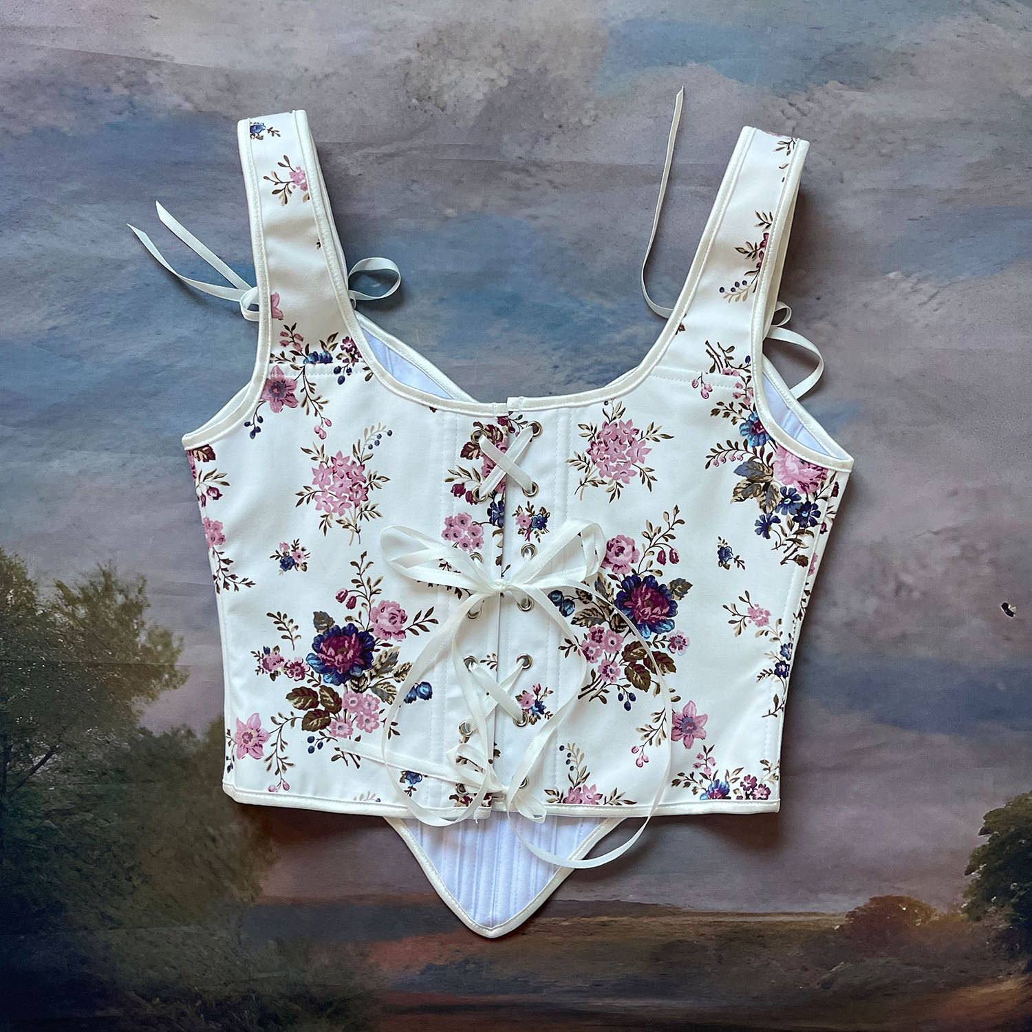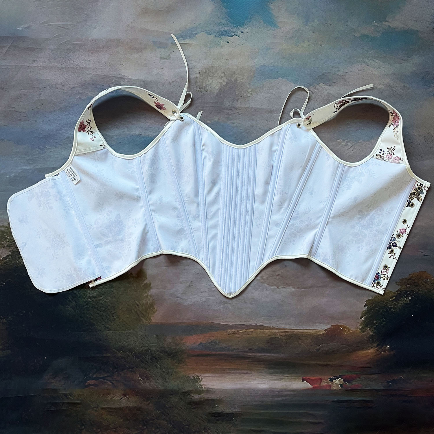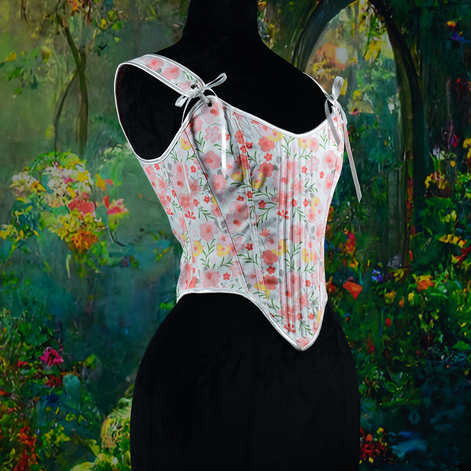 跨境新款复古抹胸胸衣油画花朵印花不规则瘦身塑形外穿塑身上衣