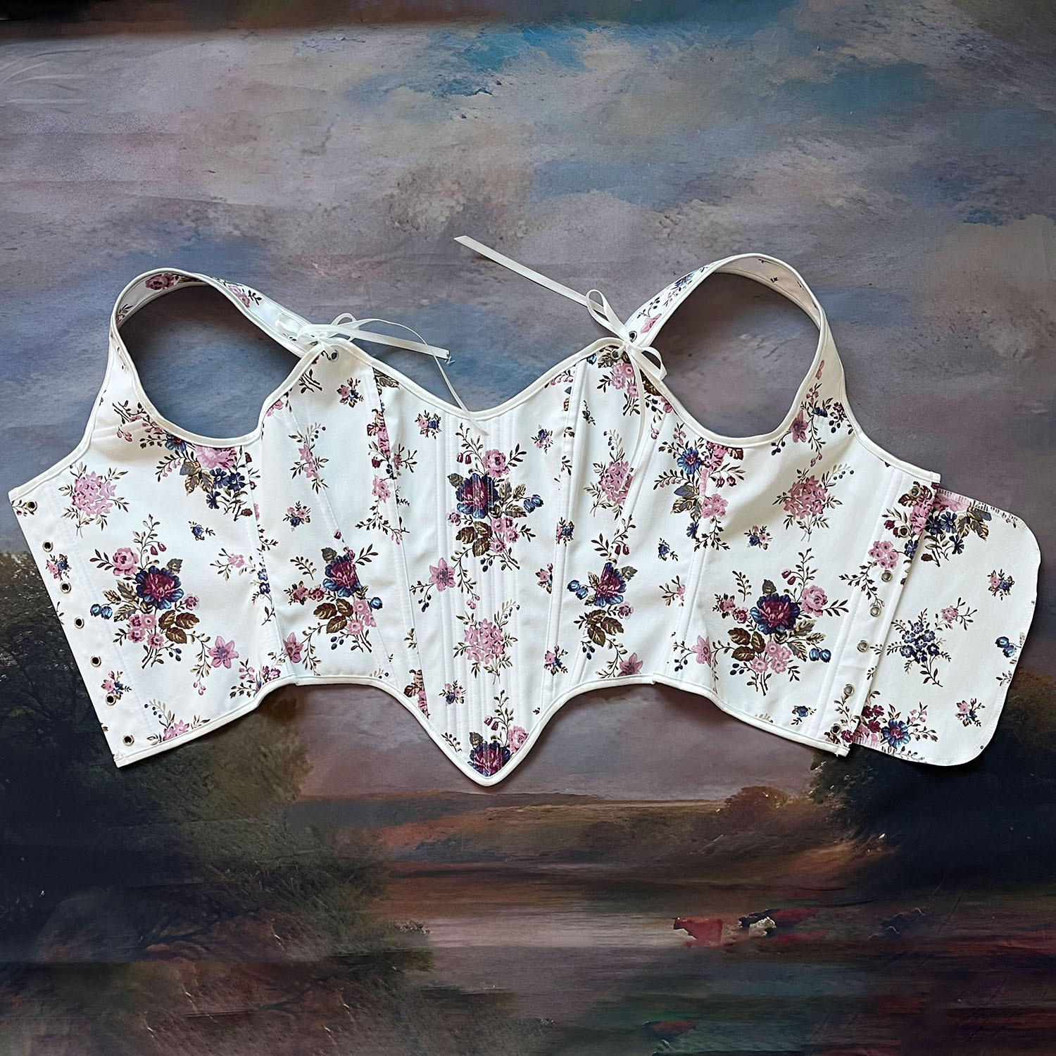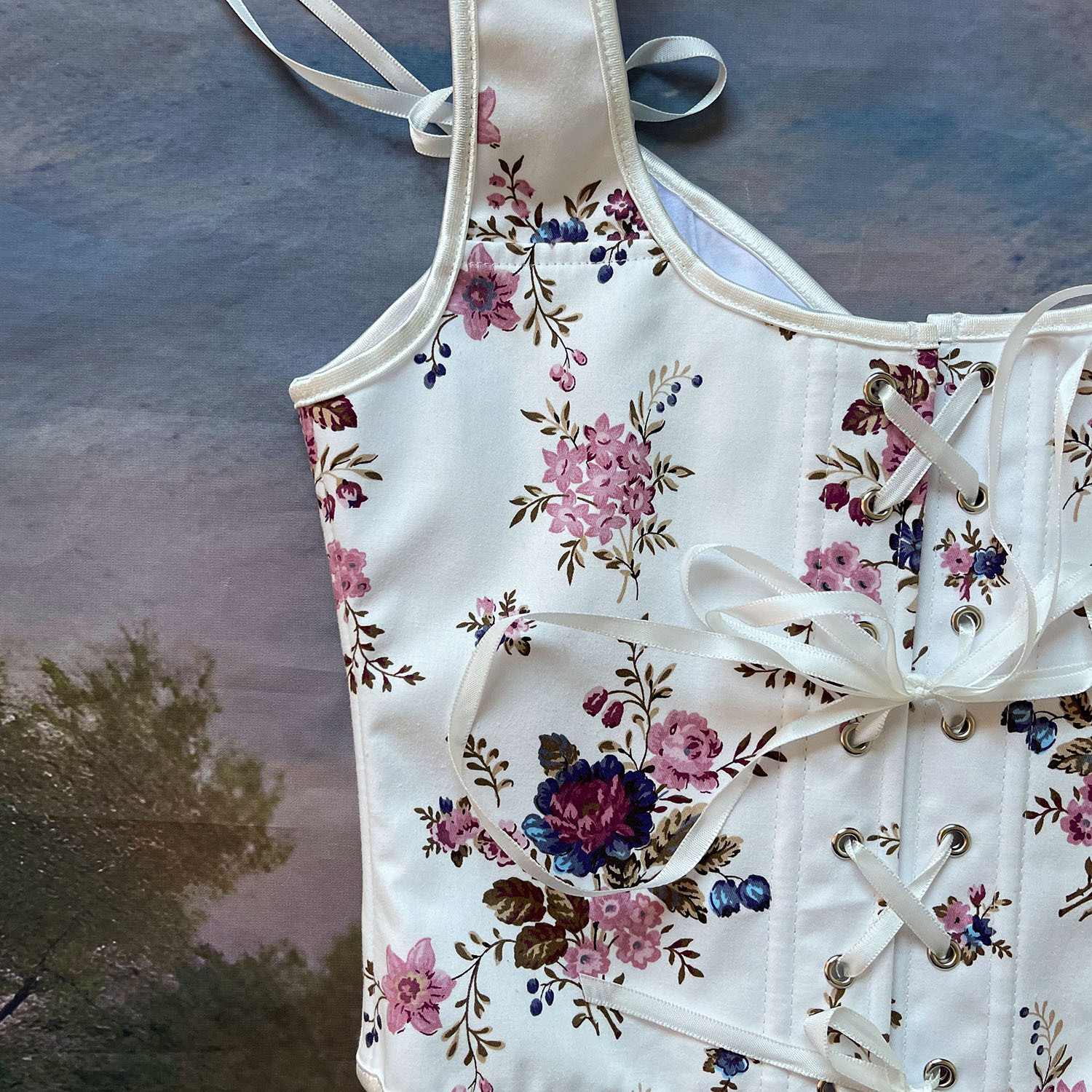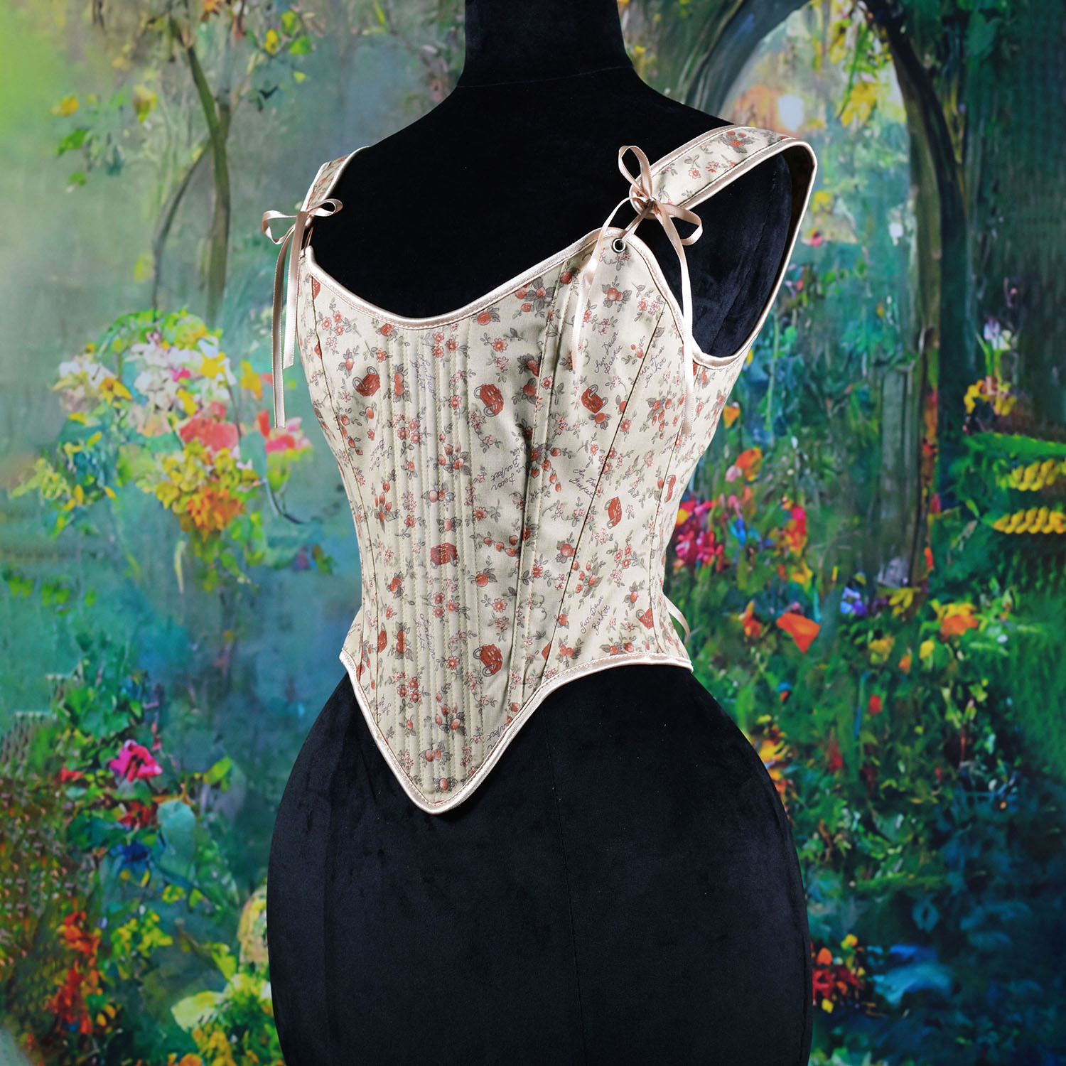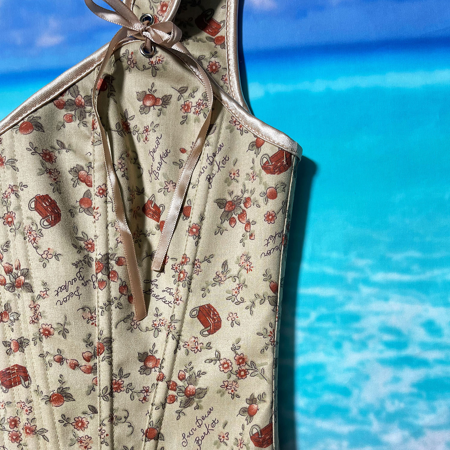 跨境新款复古抹胸胸衣油画花朵印花不规则瘦身塑形外穿塑身上衣