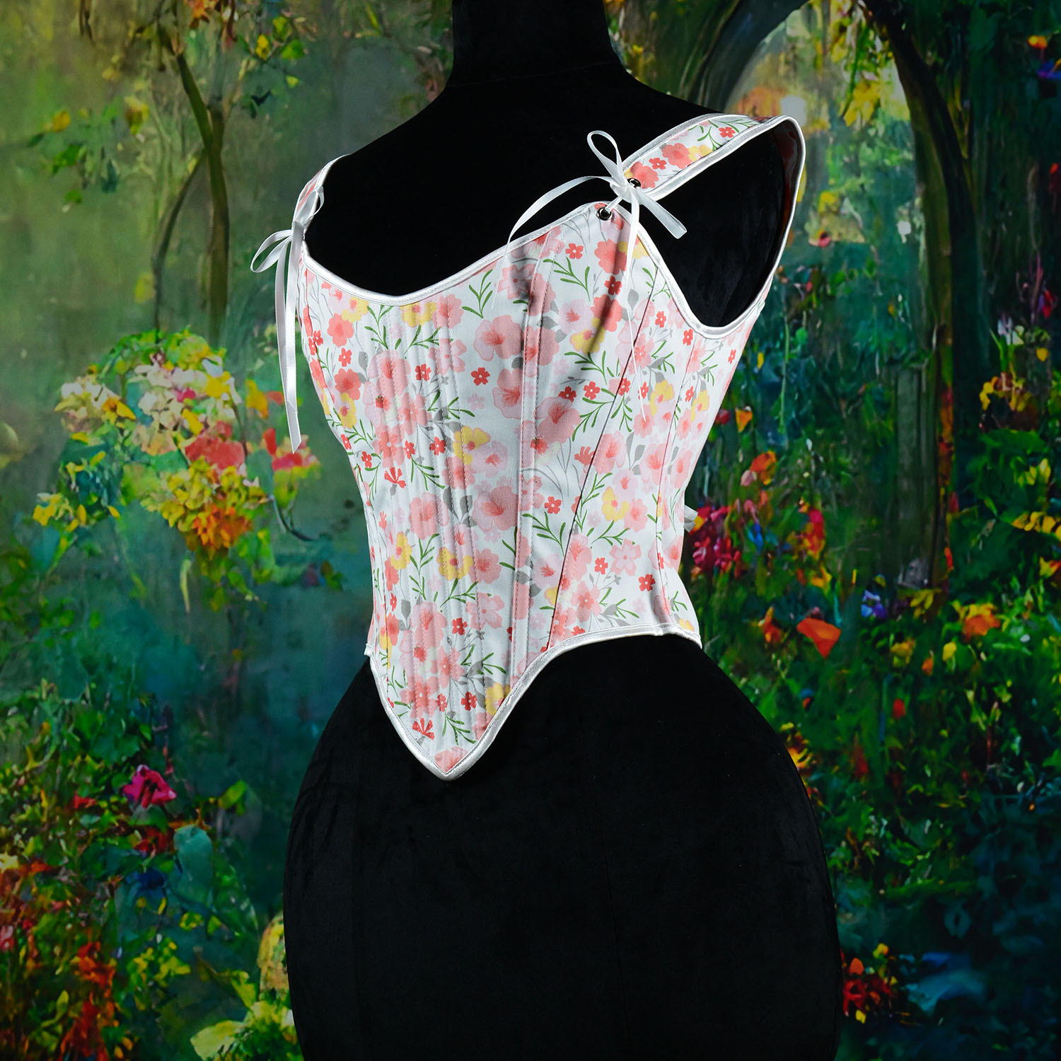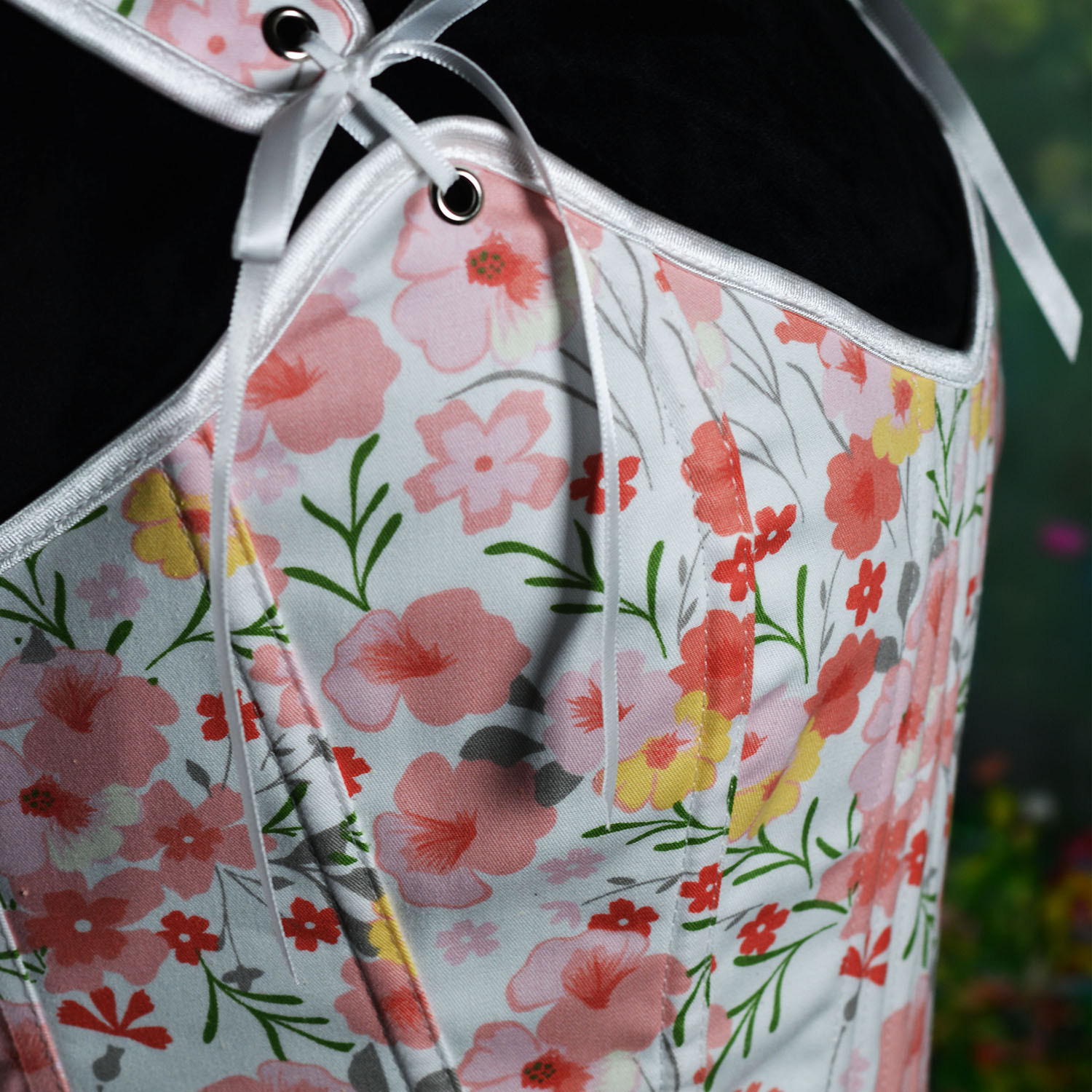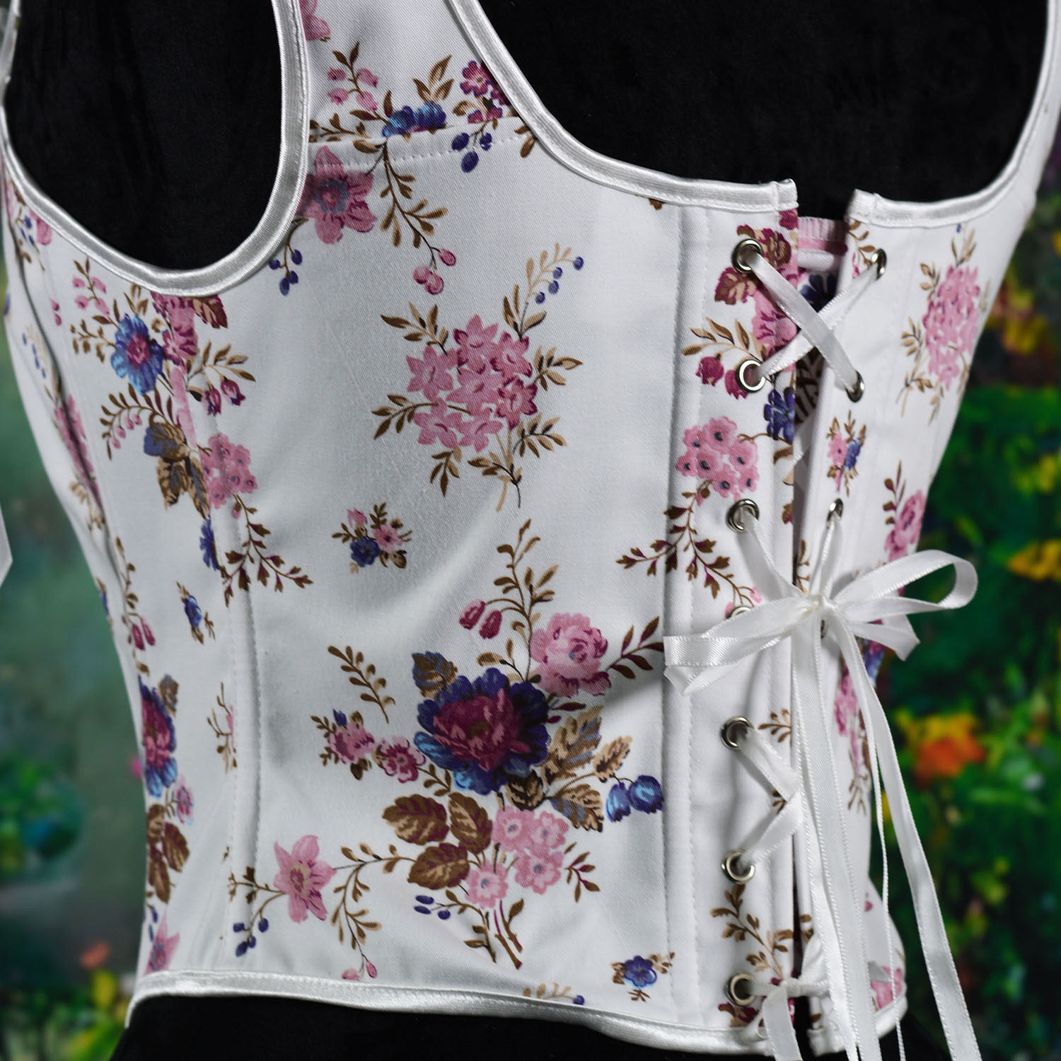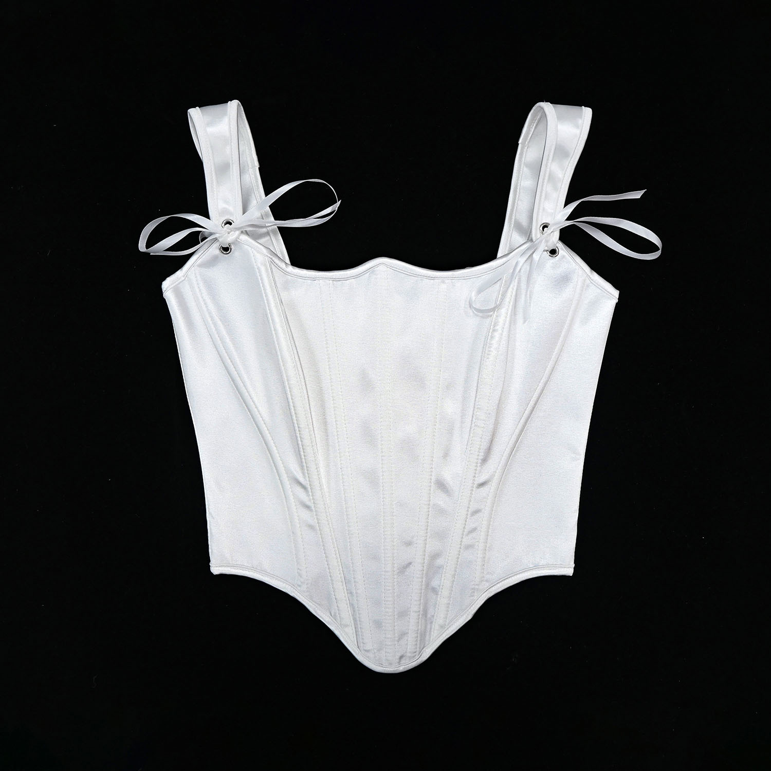 7098跨境色丁纯色V领后绑带鱼骨胸衣可调节肩带背心束身衣塑身衣