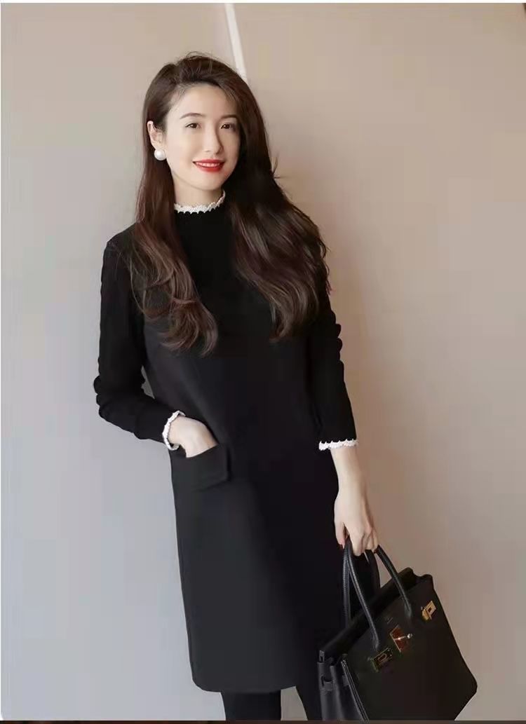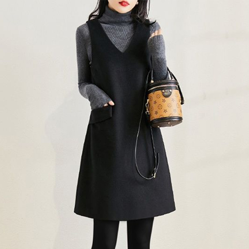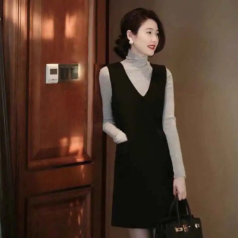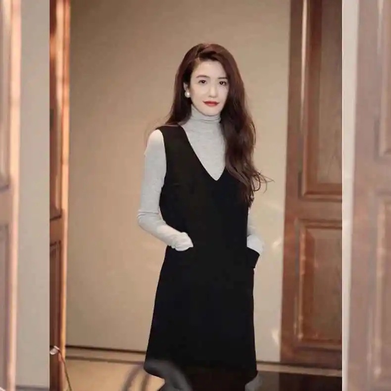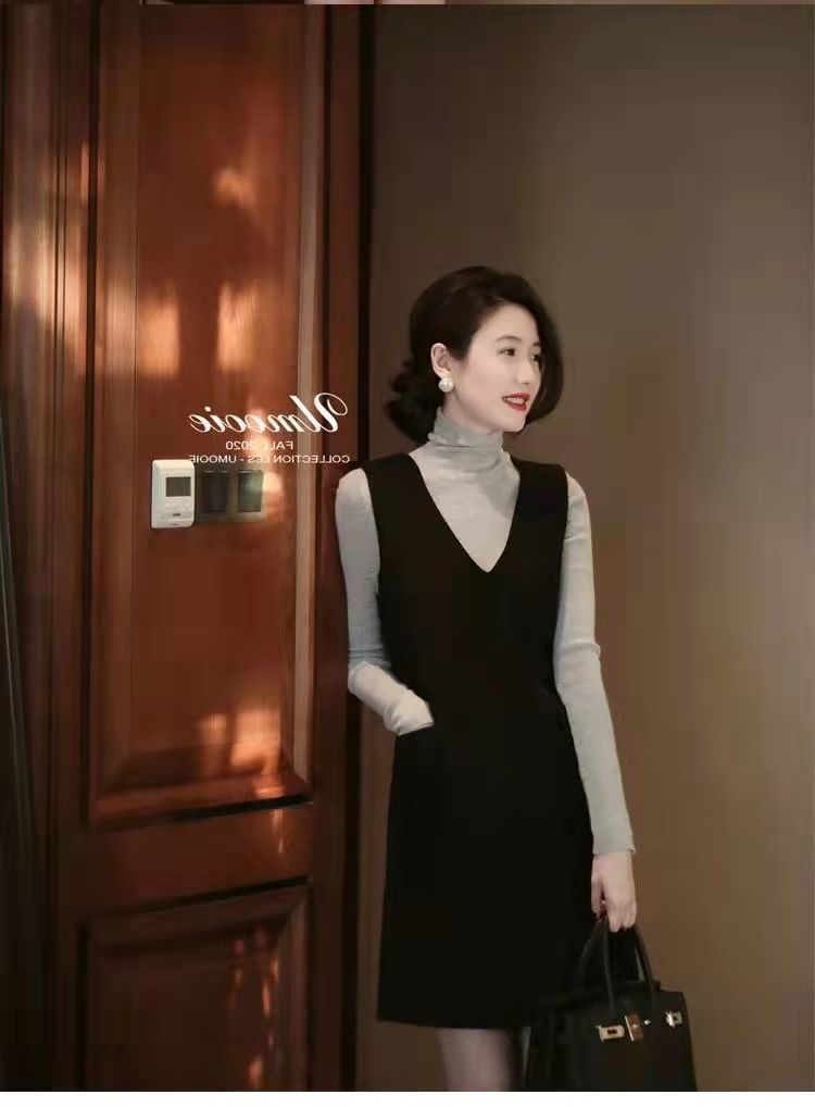 Xiaoxiangfeng ウールベストドレス女性 2025 秋と冬ウエスト痩身底リトルブラックドレスドレス