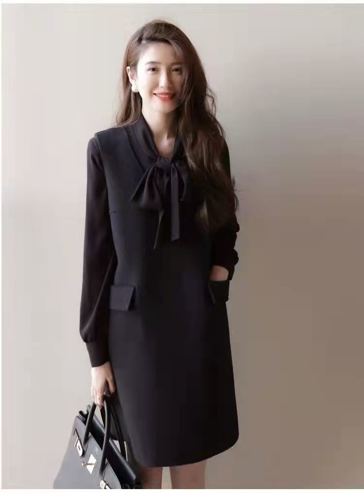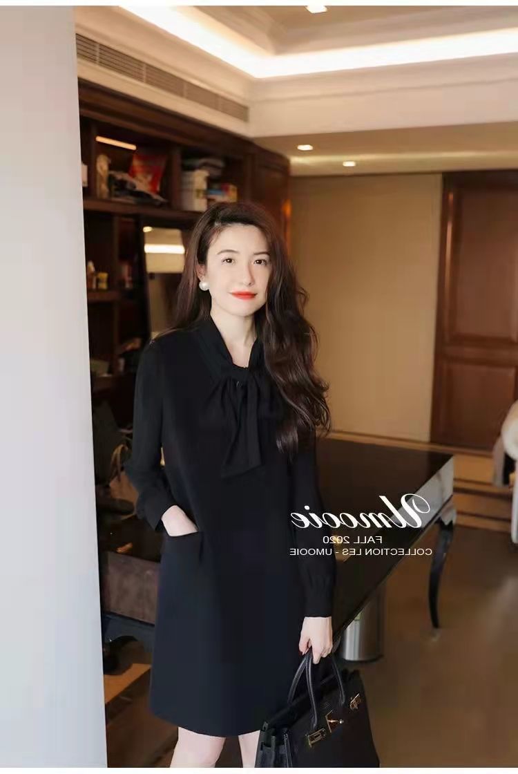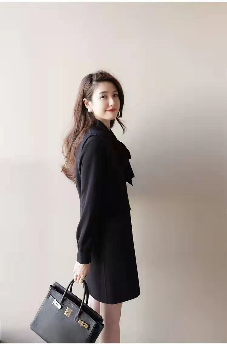 8986 Xiaoxiangfeng ウールベストドレス女性のための 2024 春と秋のウエスト痩身ボトムリトルブラックドレス社交気質ドレス