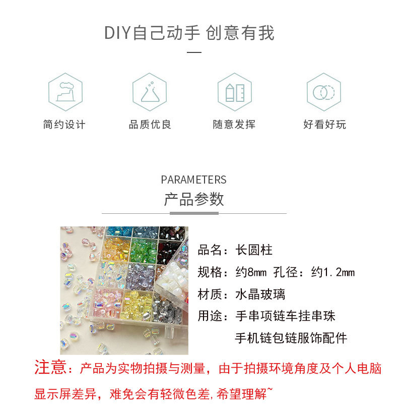 8mm長円柱水晶ガラスビーズ手串DIYアクセサリー携帯電話チェーンネックレスビーズ高透材料