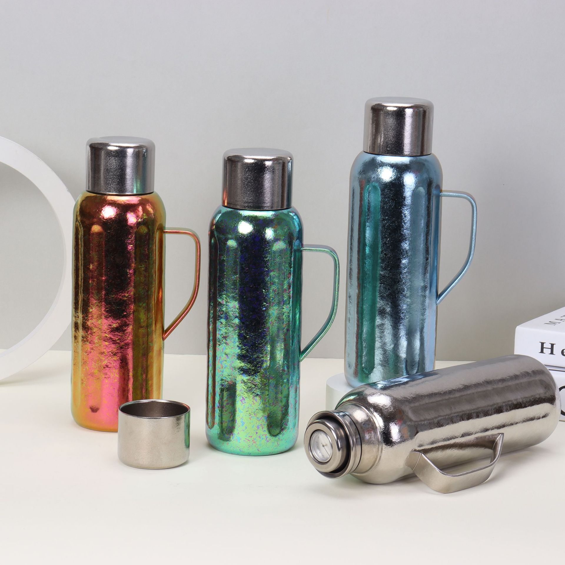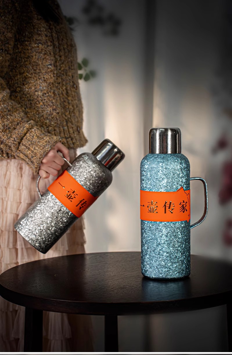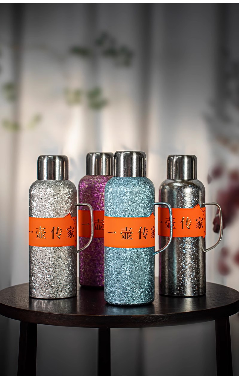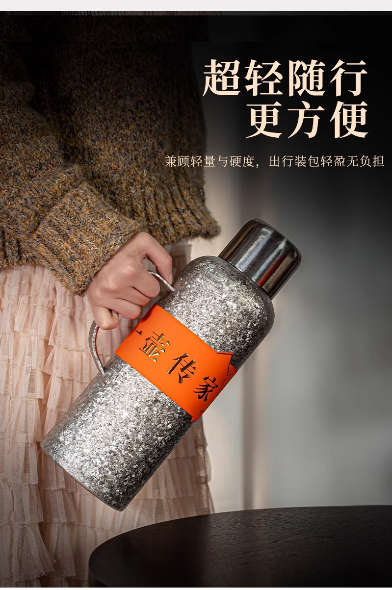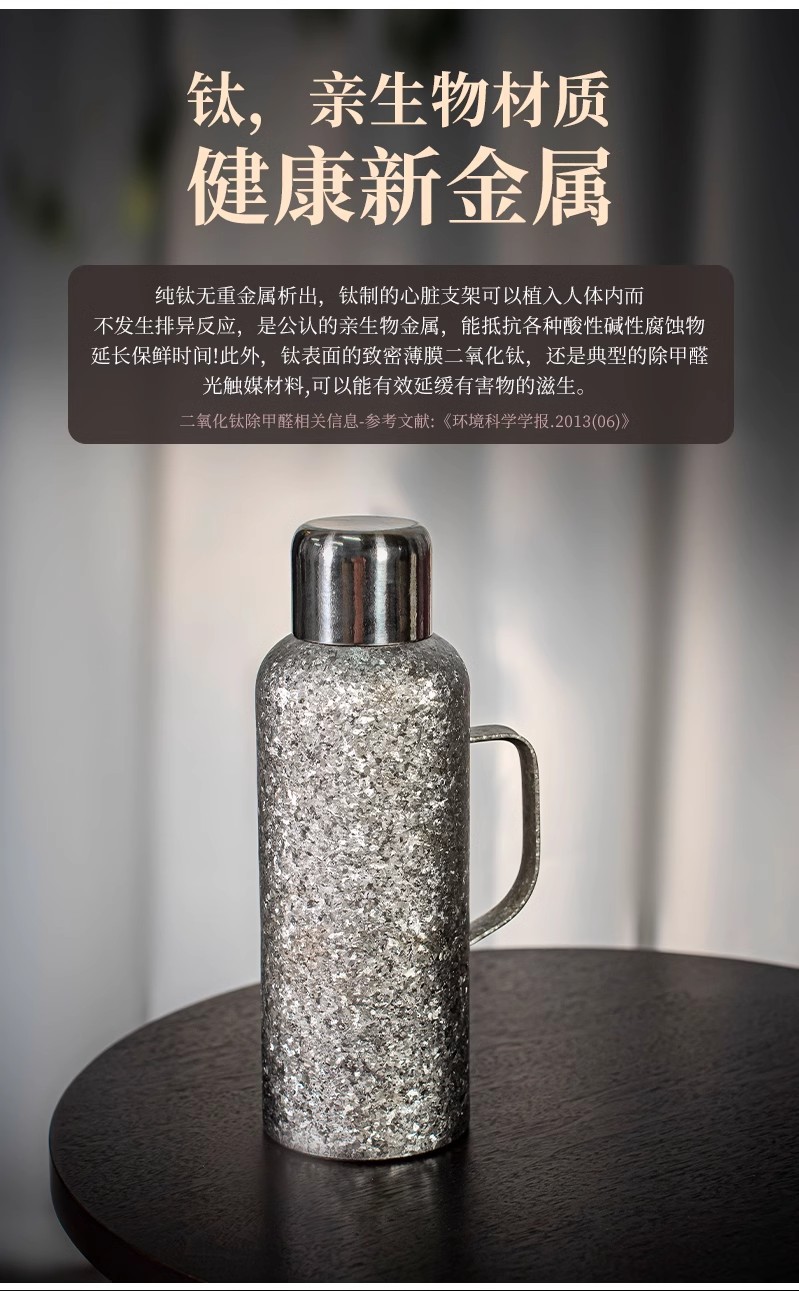 新型純チタン大容量保温ポット携帯ハンドル軽豪華高級感保冷カップ女性高颜値彫刻カップ