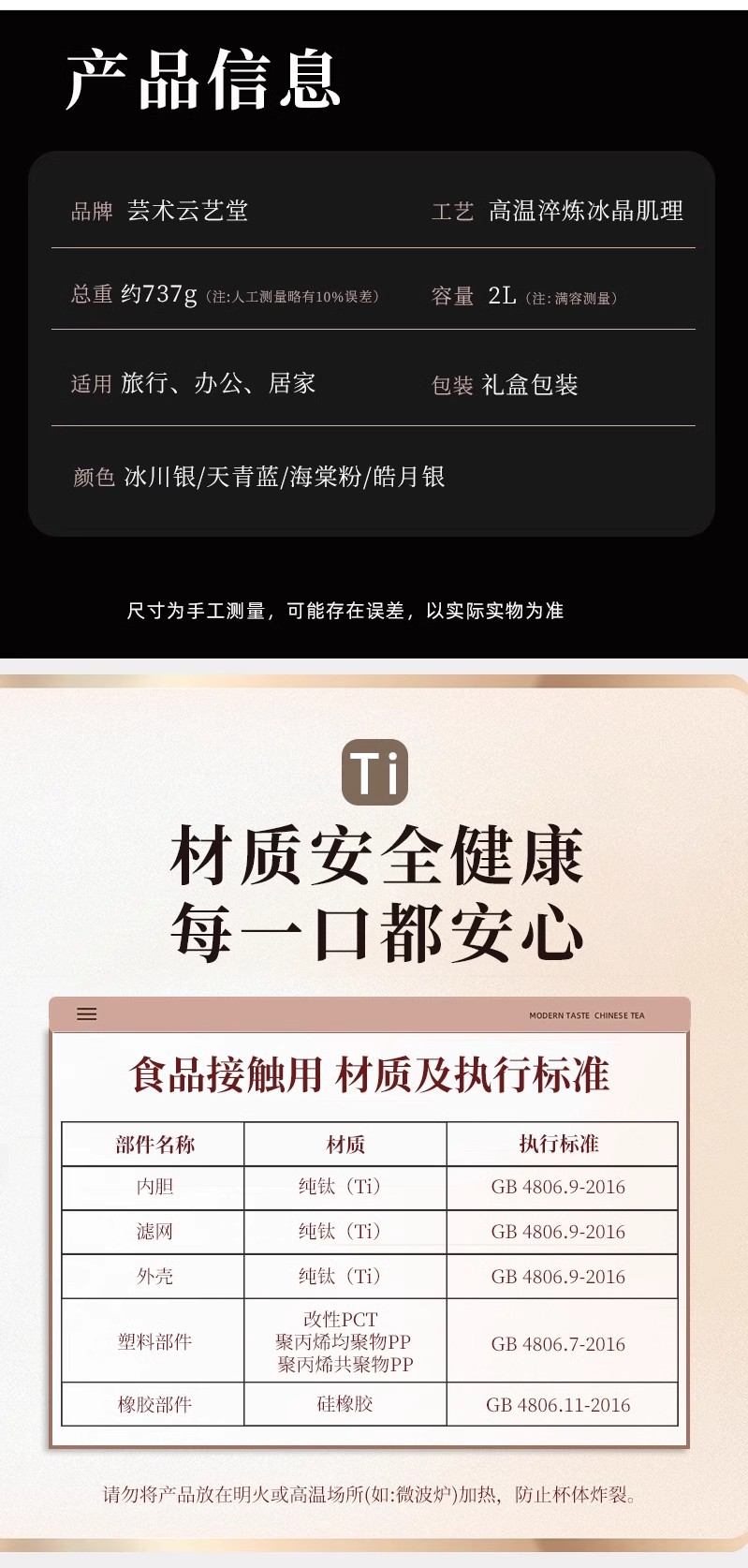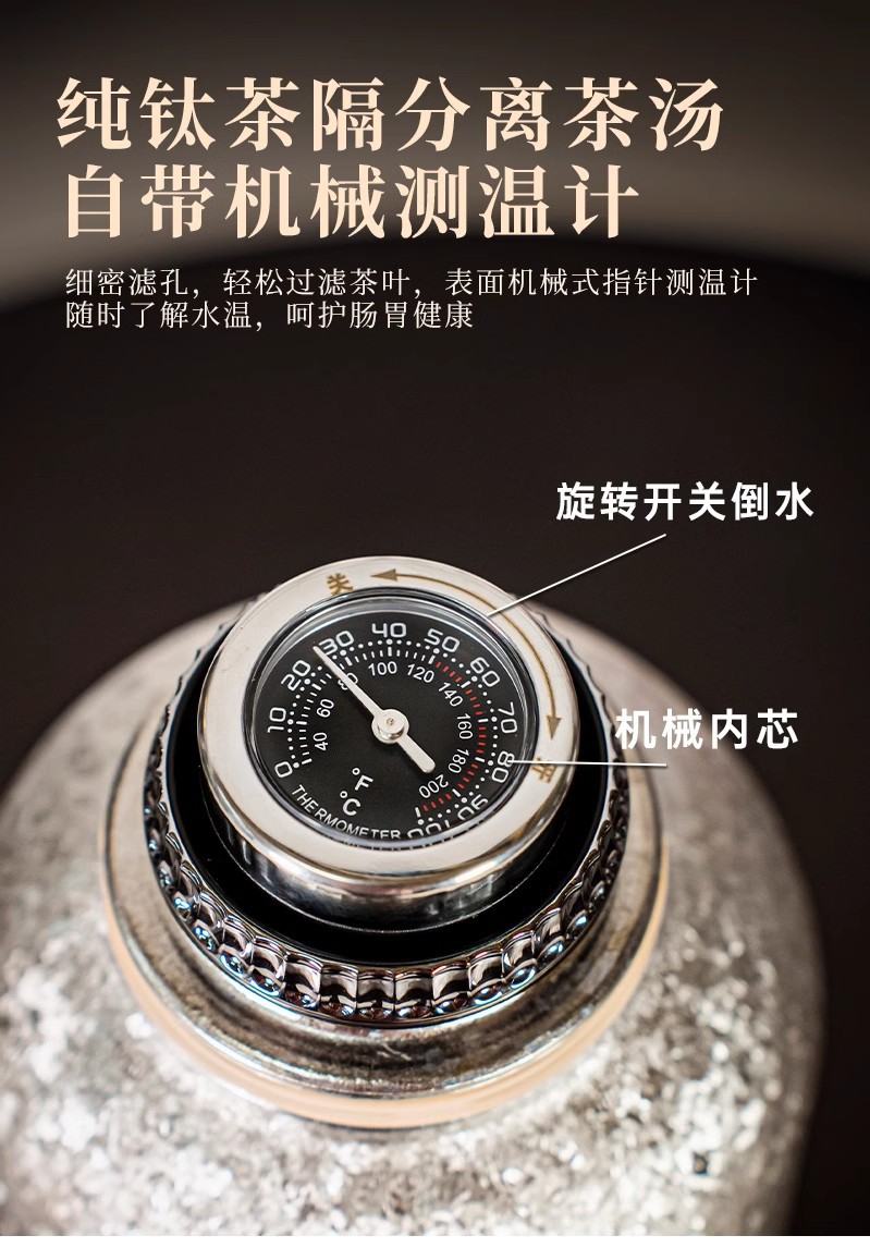 纯钛大容量磁吸杯盖茶水分离保温杯传家壶传世壶机械显温纯钛水壶