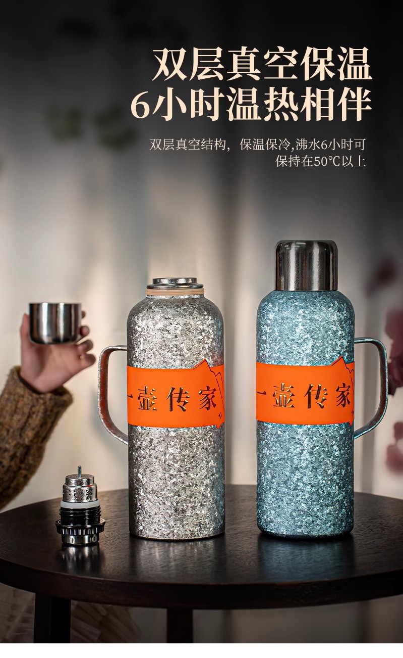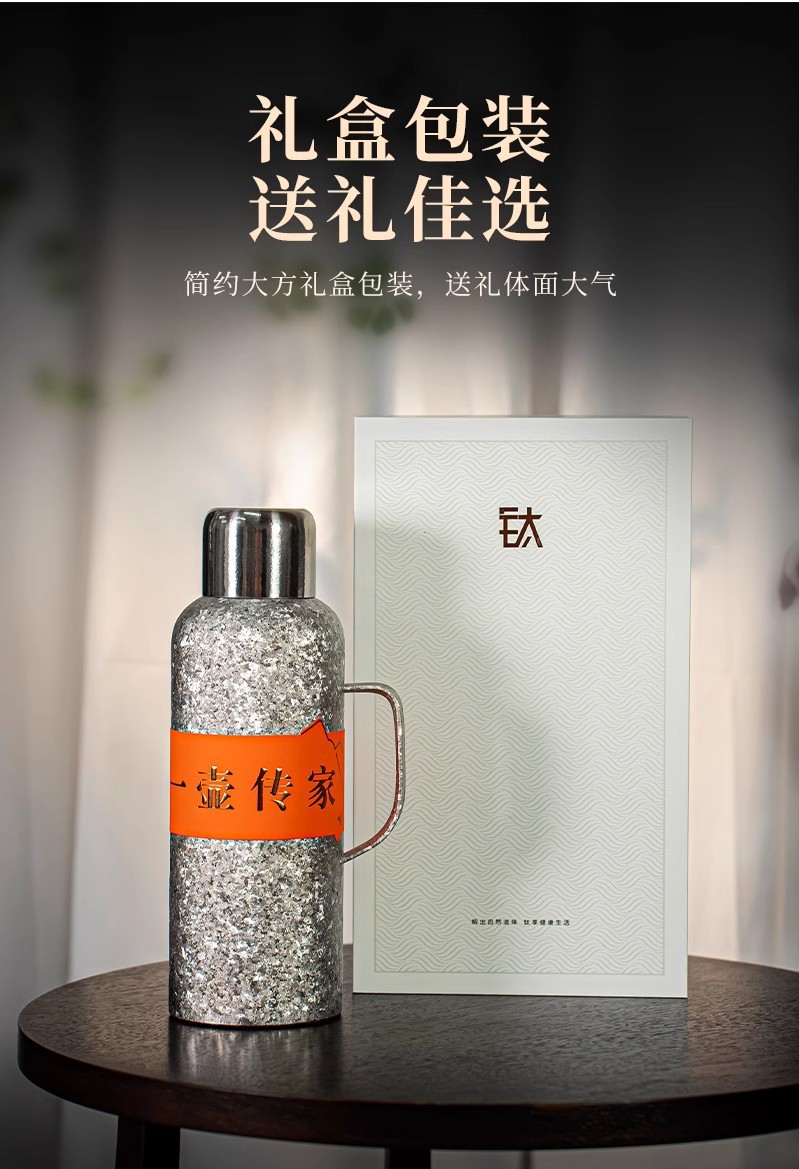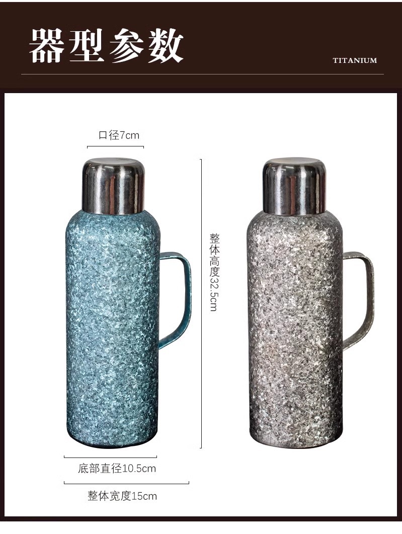 900ML传家壶内外纯钛保温壶带手柄磁吸盖钛杯大容量水壶