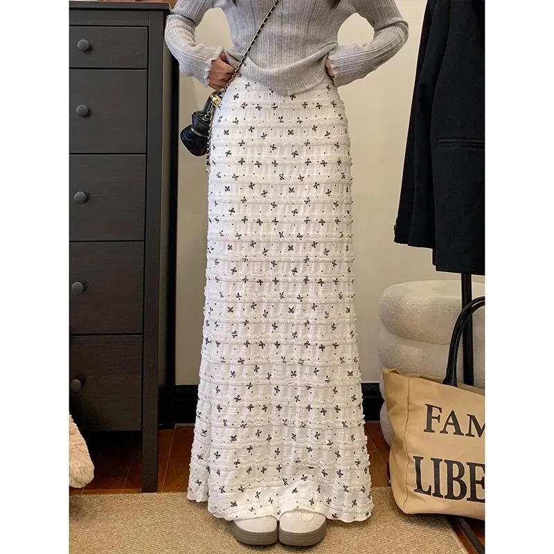 クロスボーダー夏休み風リボンジャカードレース透かし彫り花柄フィッシュテールスカート、スリムで純粋な魅力のロングスカート