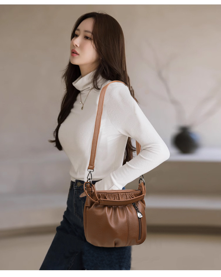 柔らかい表面のファッショナブルなバケツバッグ中年母親のための 2025 新しい韓国スタイルのシンプルで雰囲気のあるシングルショルダークロスボディバッグカジュアル