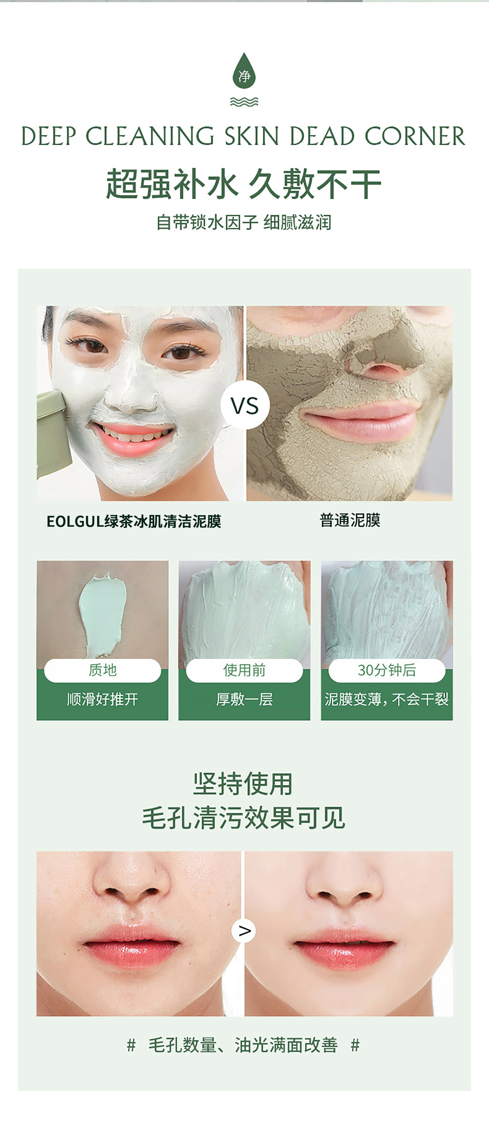 魅点緑茶泥マスク 深層汚れ除去 毛穴縮小 油分バランス 水分補給 マスク塗布 オイルコントロール 黒ずみ除去