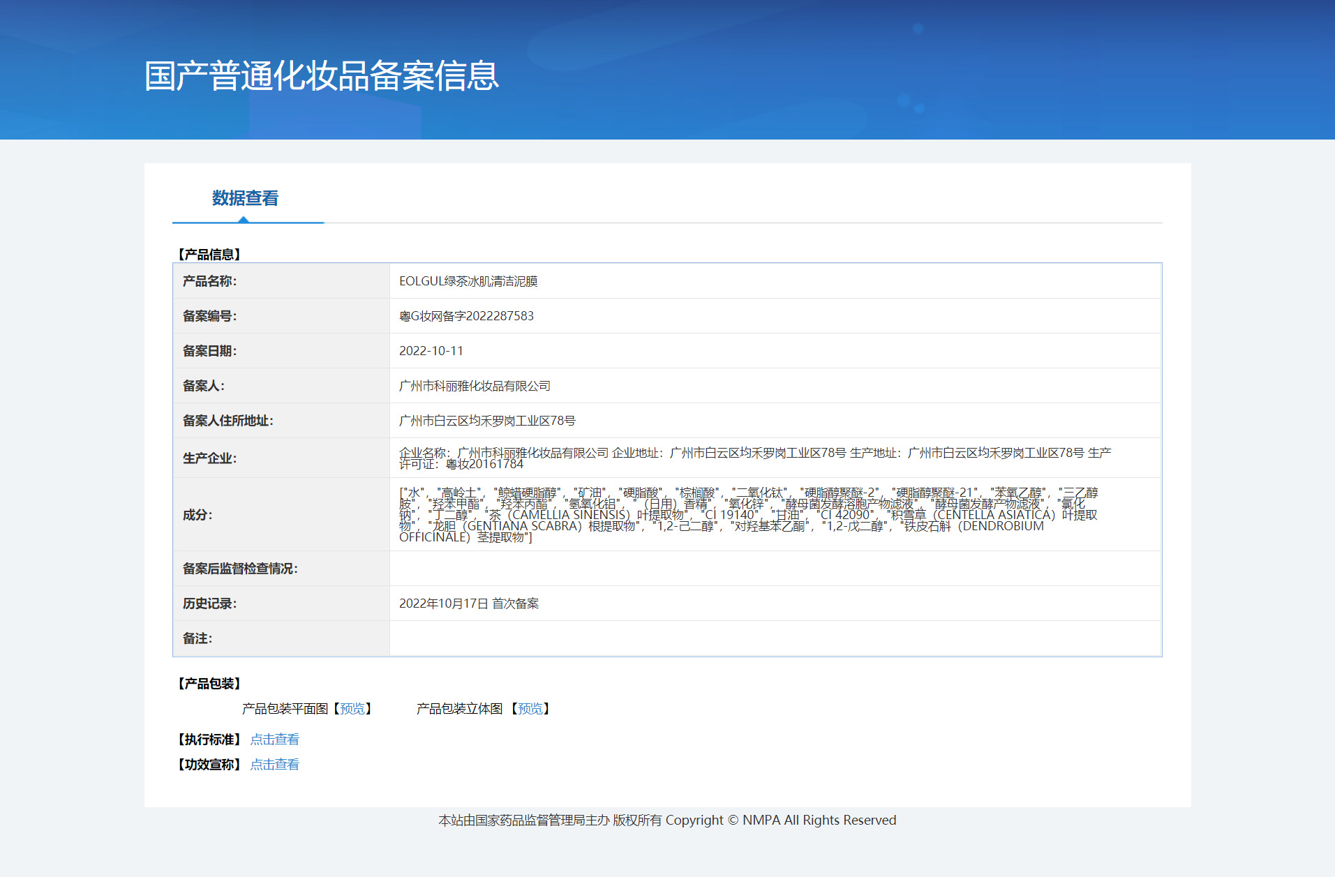 非特殊化粧品登録証番号 広東省Gメイクアップネットワーク準備ワード2022287583