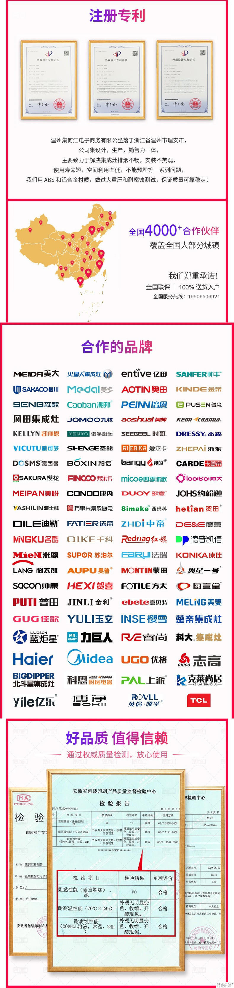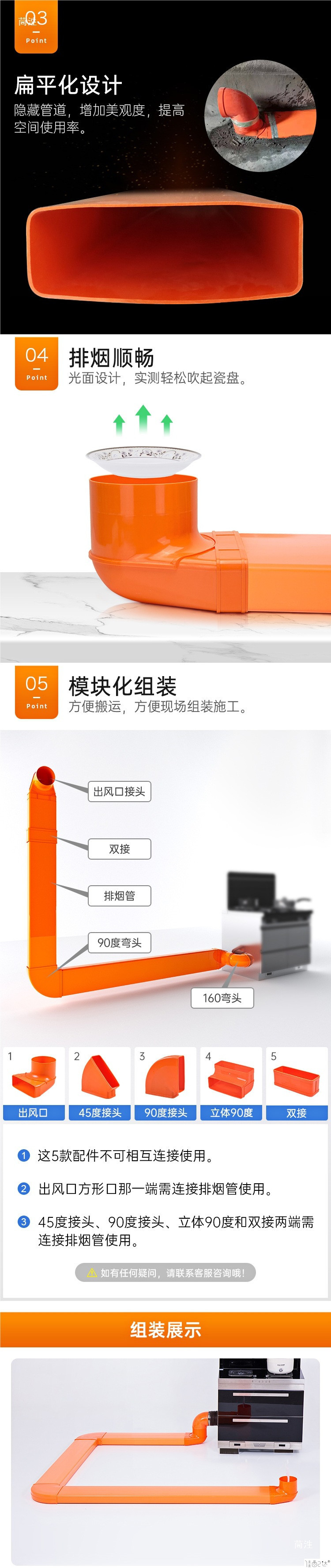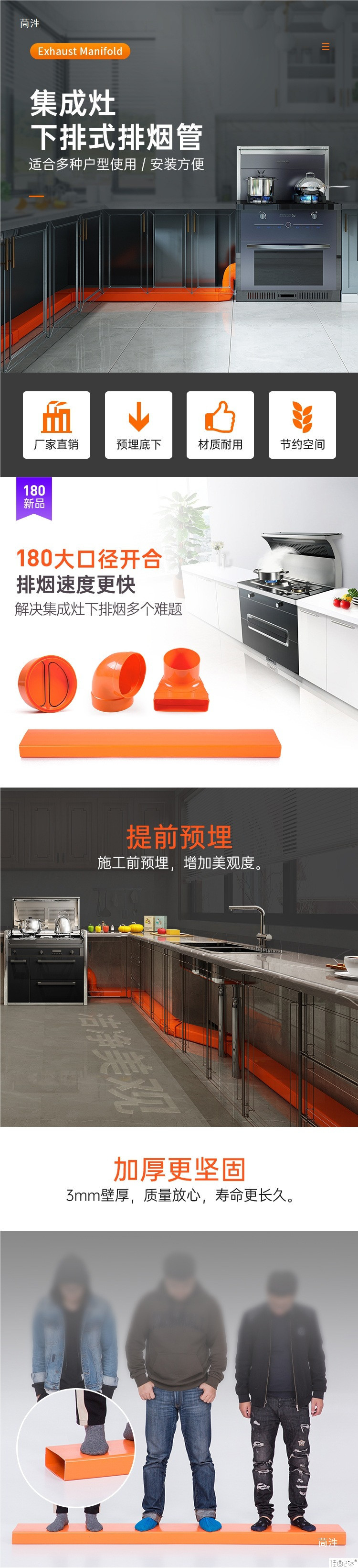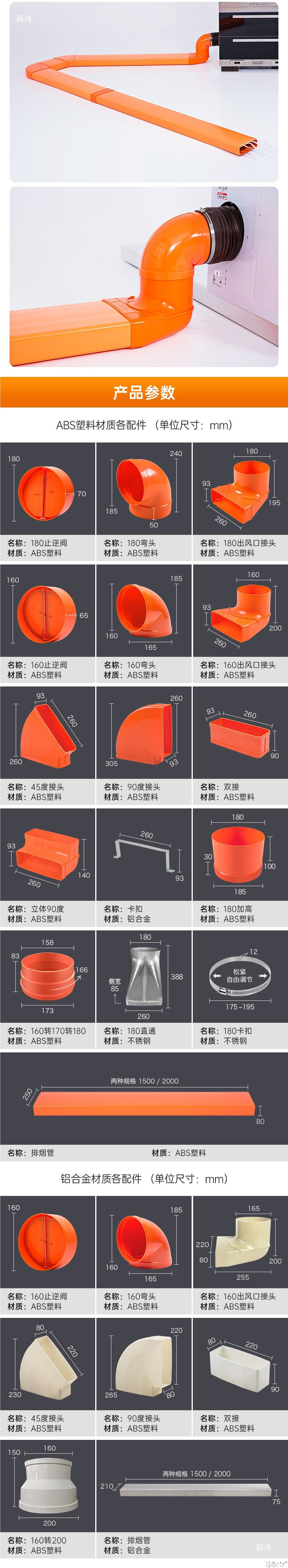 キッチン一体型ストーブ煙管、フラット煙管、レンジフード、プラスチック排煙管、埋め込み可能なABS角型排煙管