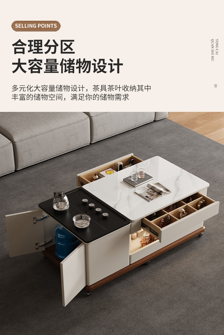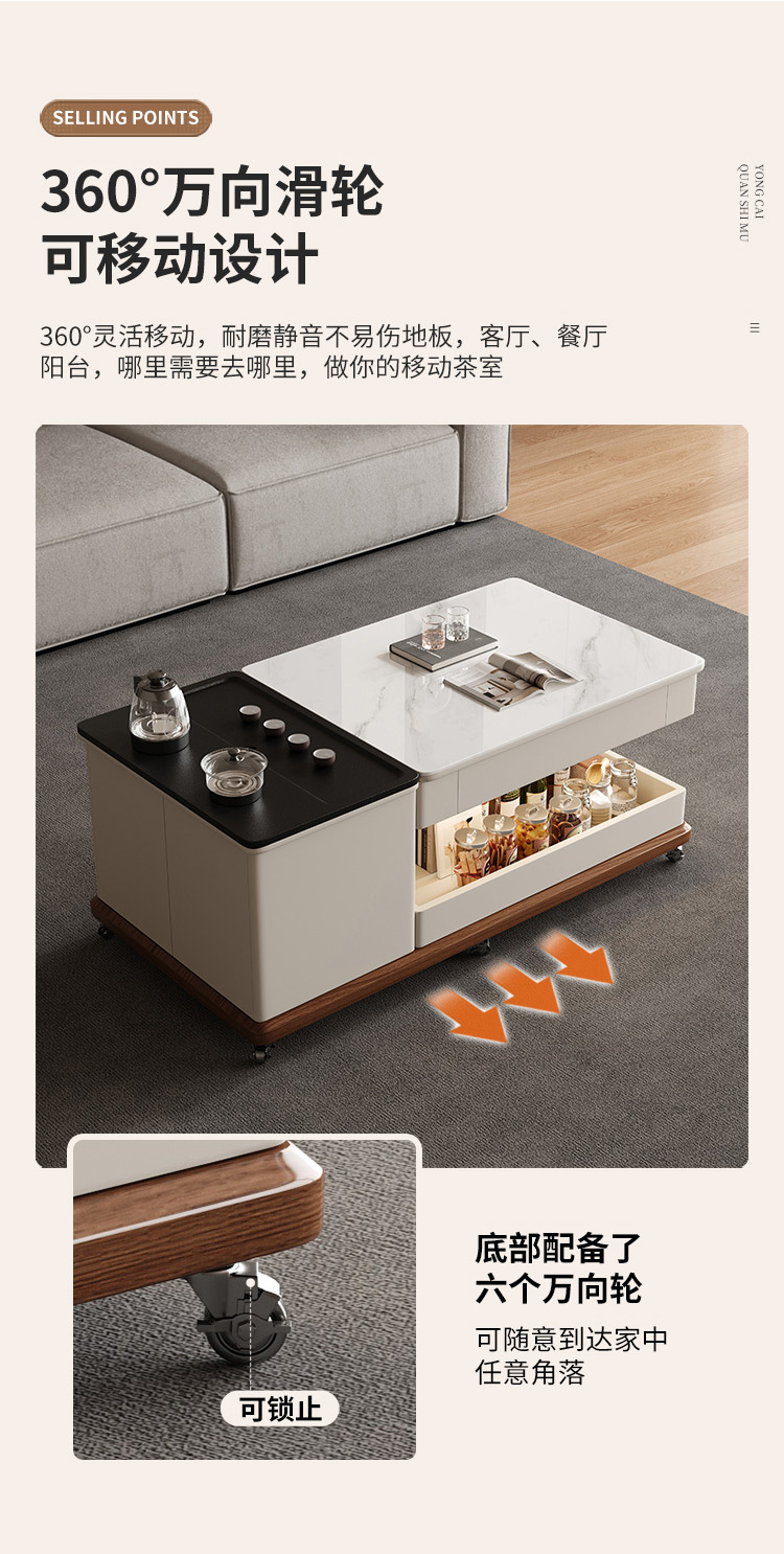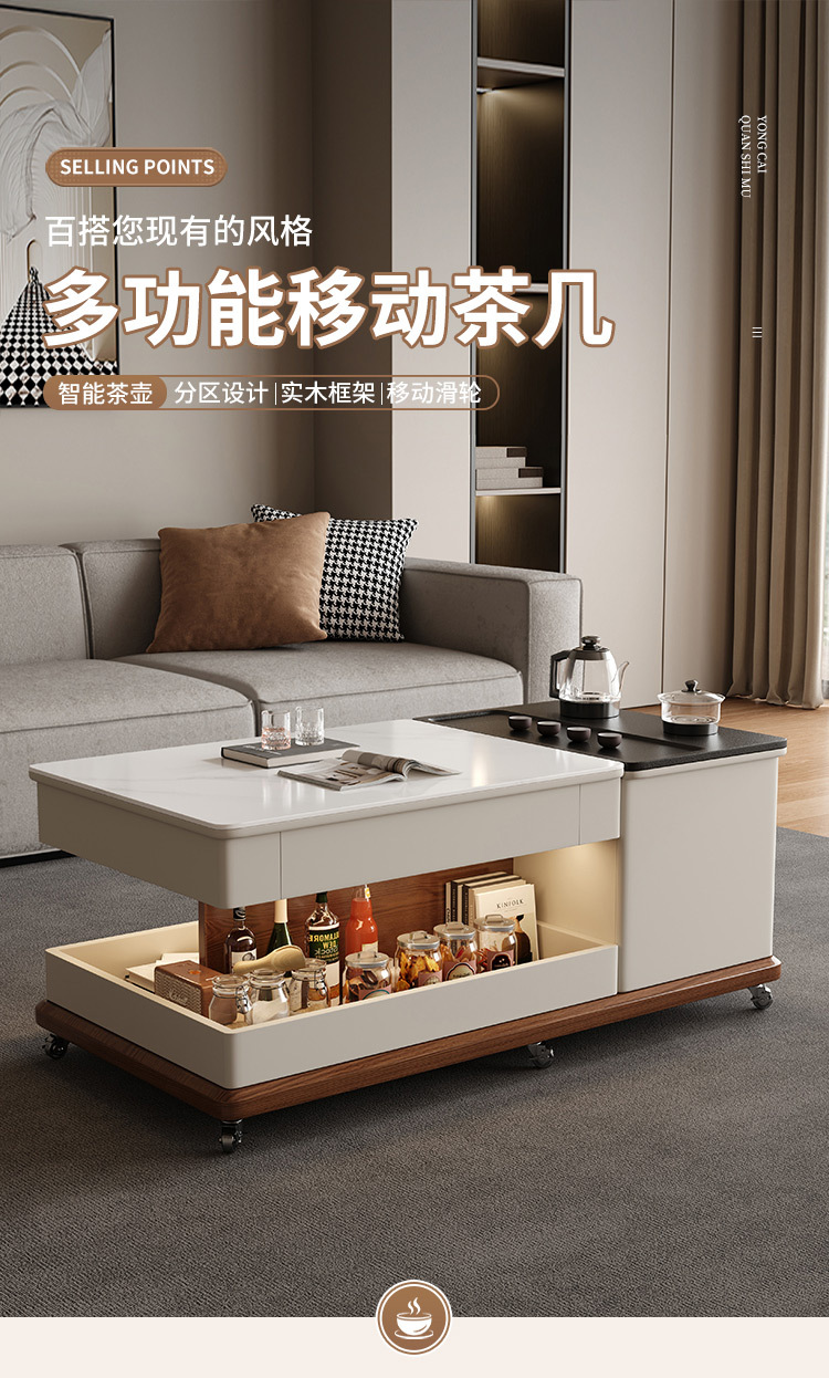 客厅茶几家用泡茶现代简约功夫轻奢新款可移动岩板多功能小桌茶几