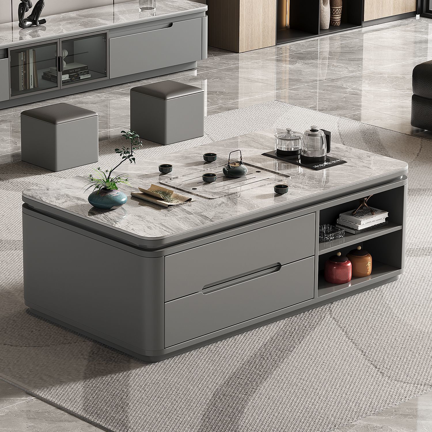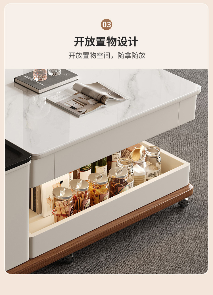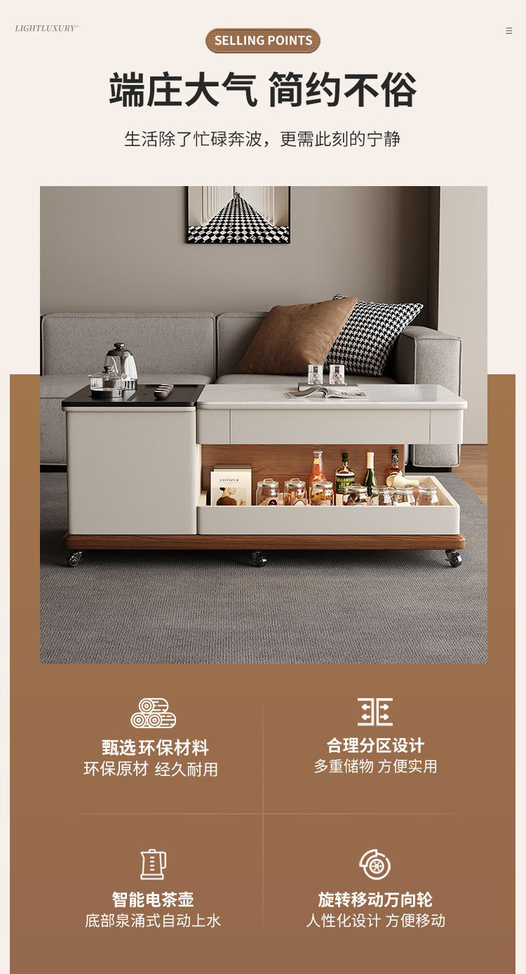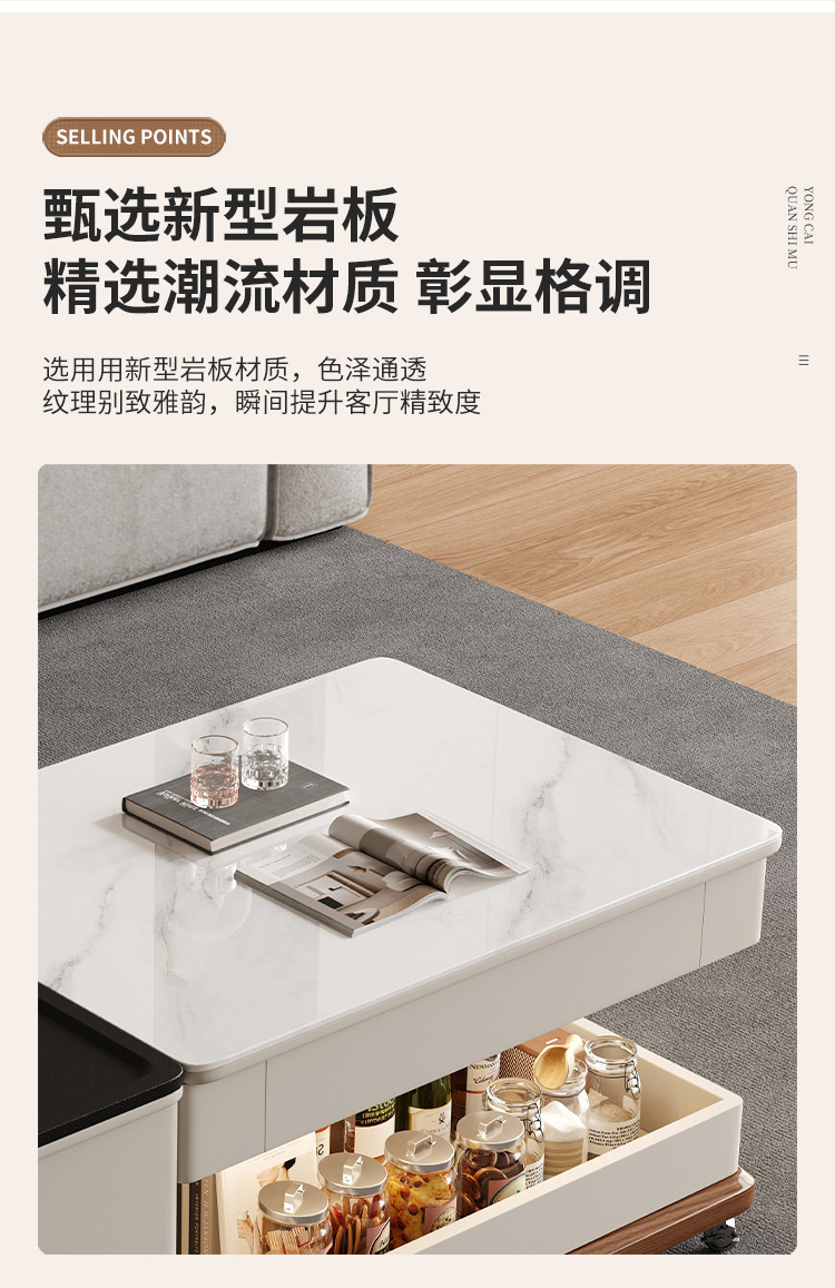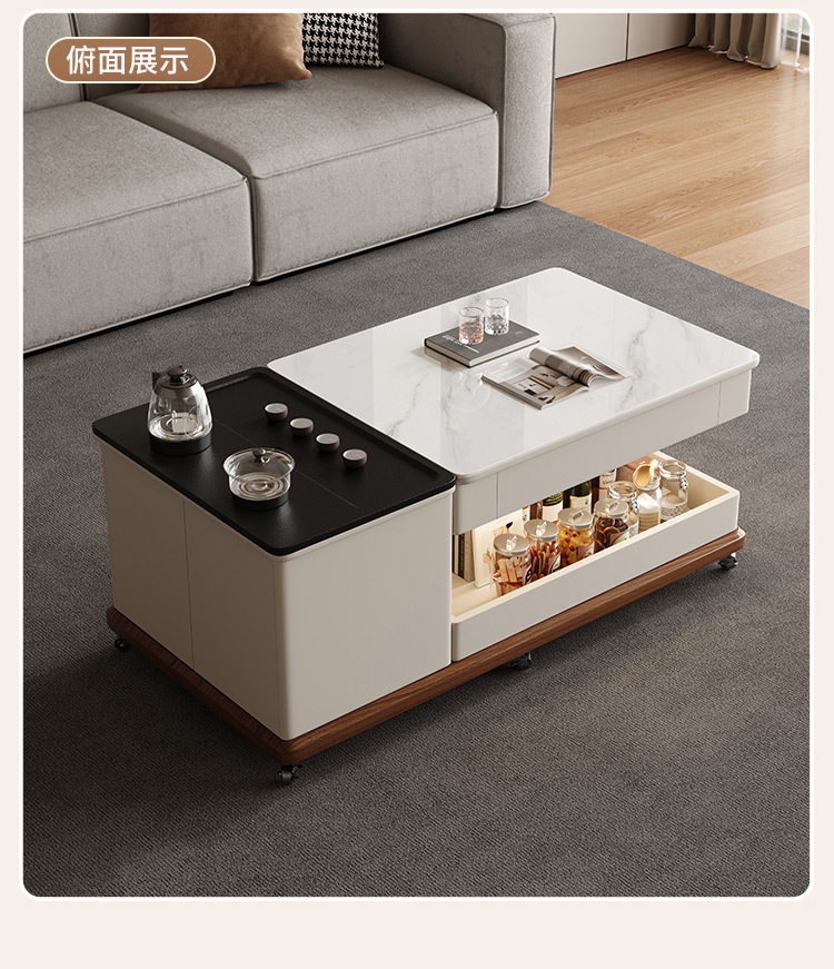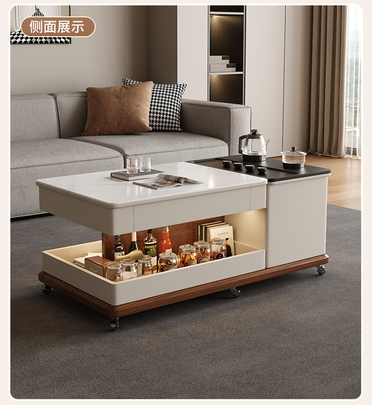 現代知能岩板昇降茶卓客間家庭用小戸型茶卓茶卓テレビ盤の組み合わせ高級感