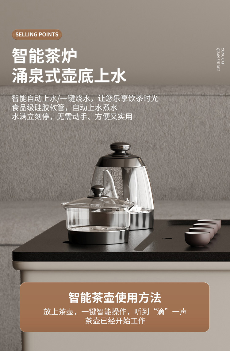 简约智能可升降功夫茶几带烧水壶的茶台家用一体岩板全自动泡茶桌