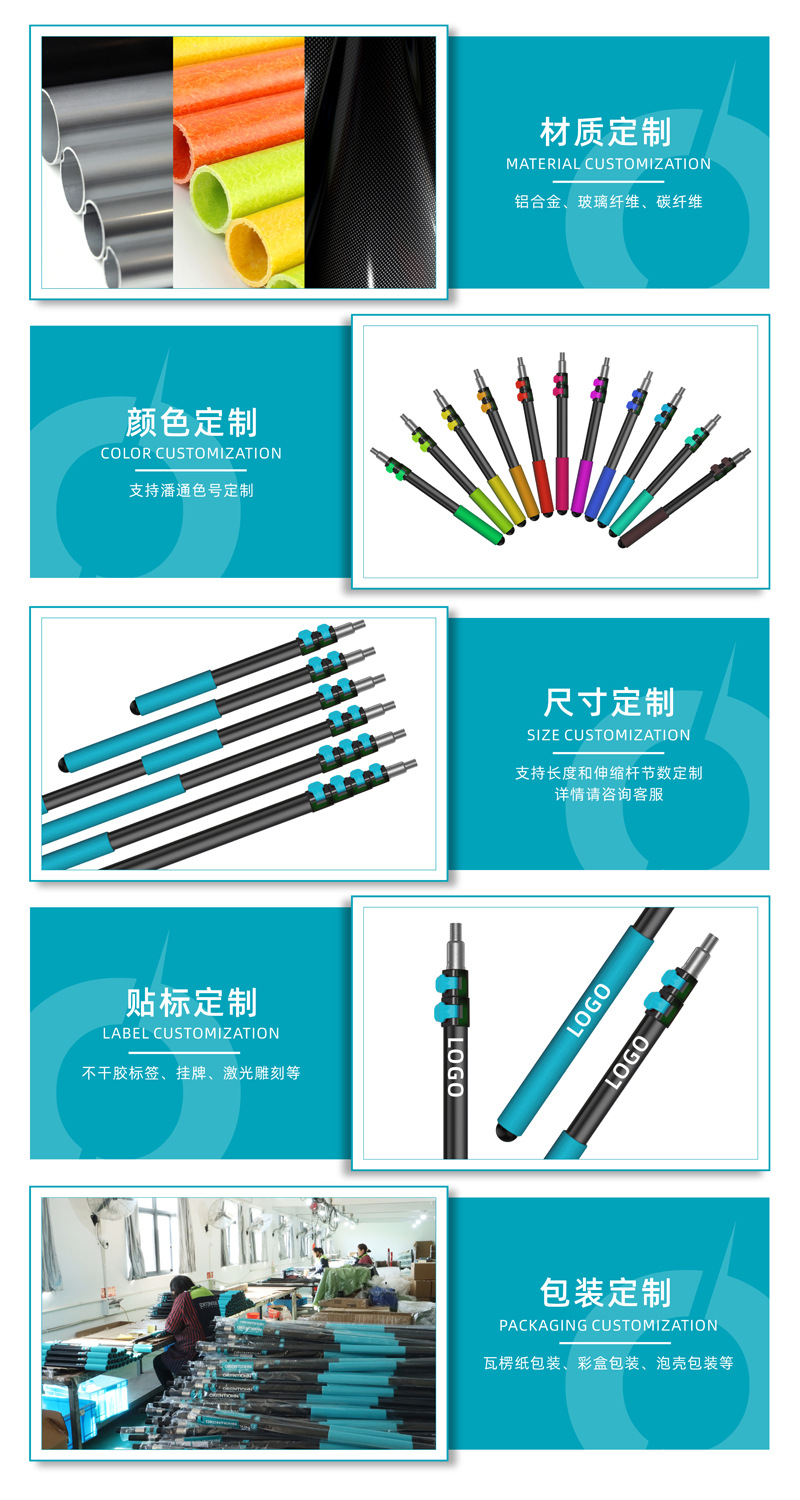ペイントアルミ合金伸縮ロッドガーデニングステンレス鋼伸縮ロッドクリーニングツール延長ロッドサポート肥厚ロッド