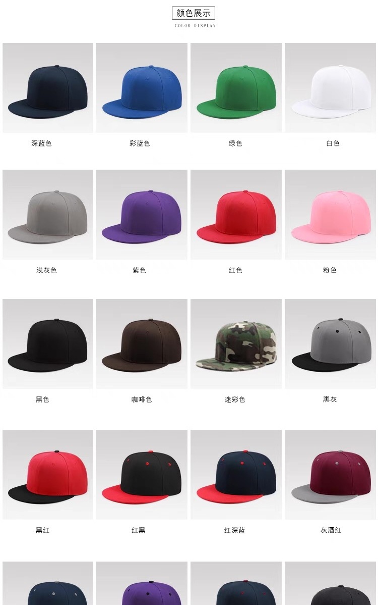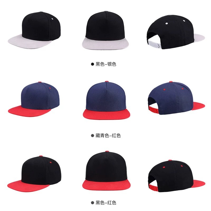 跨境拼色美式六片平檐嘻哈帽男女纯色光板嘻哈棒球帽男女同款排扣