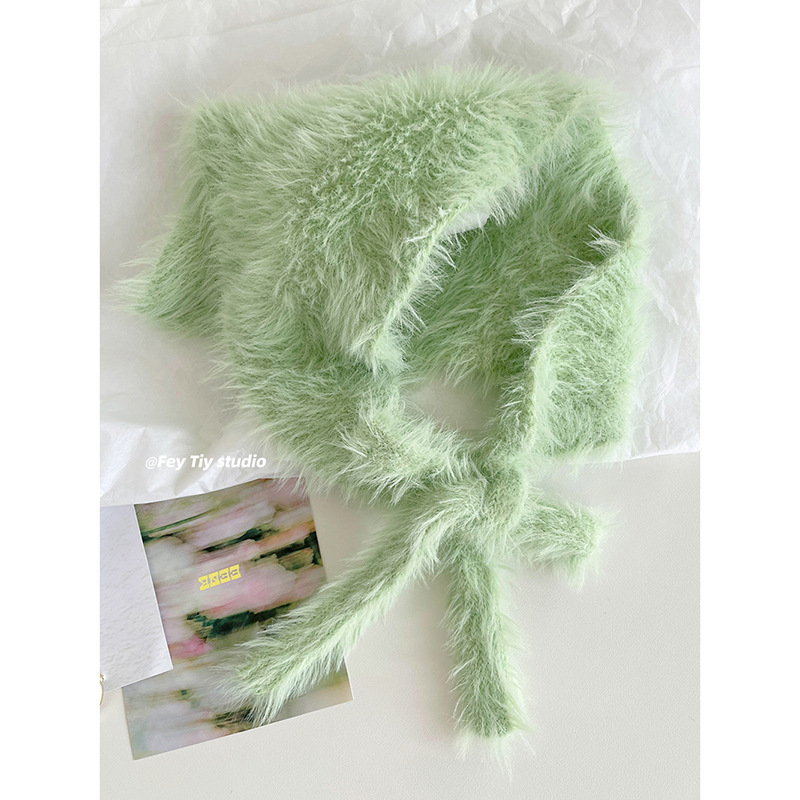 オリジナルのマカロンの毛の三角タオルの頭のスカーフのスカーフの少女の秋冬の純色のぬいぐるみのマフラーの韓国版