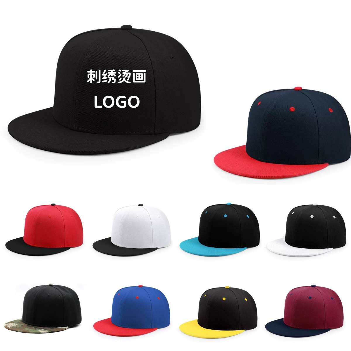 メーカー直供平つばヒップホップ野球帽男プリントロゴ刺繍広告帽流行街舞平沿帽女