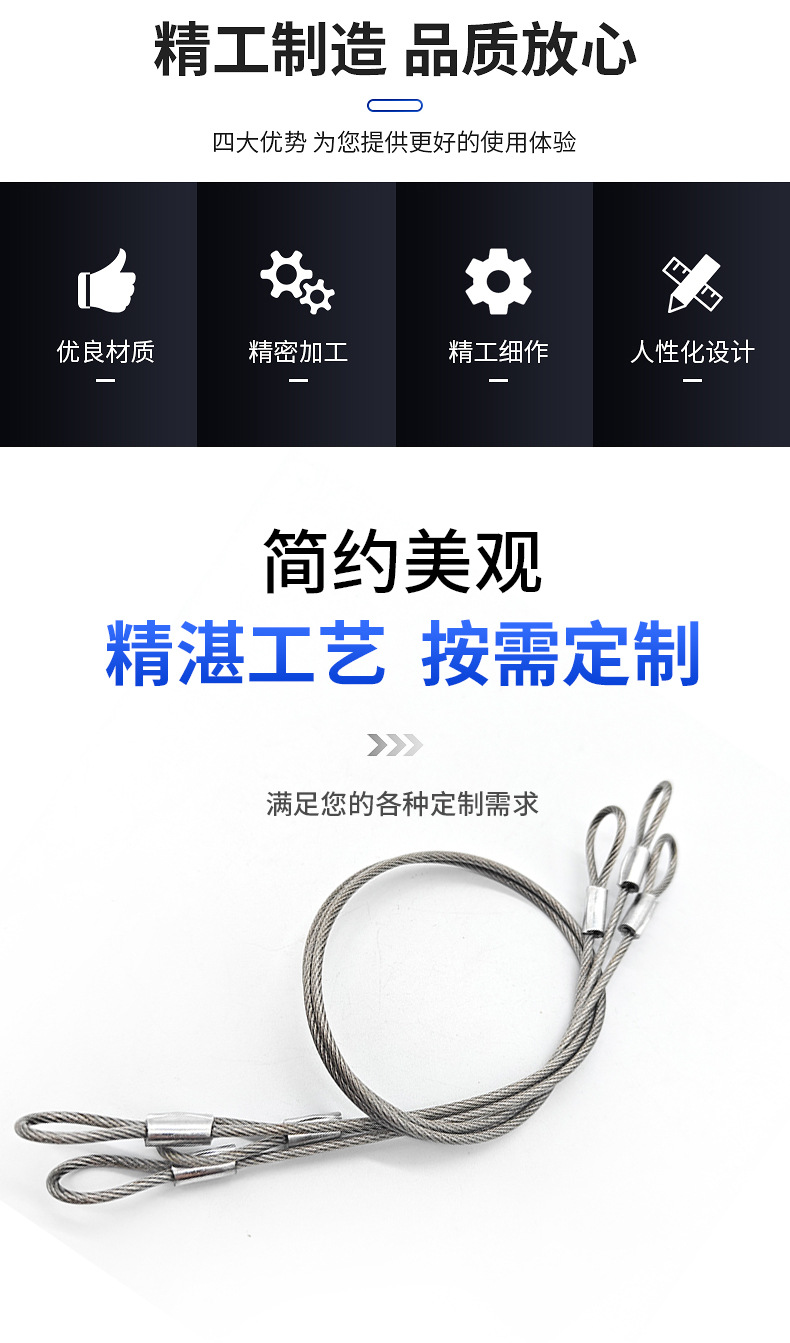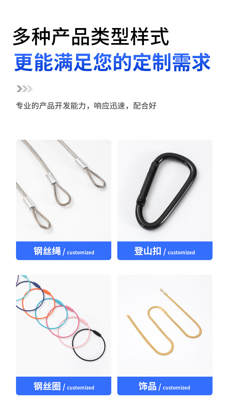 201ステンレスワイヤーロープ楕円アルミバックル丸押し平押し牽引ロープフック端子プレス吊りロープ現物