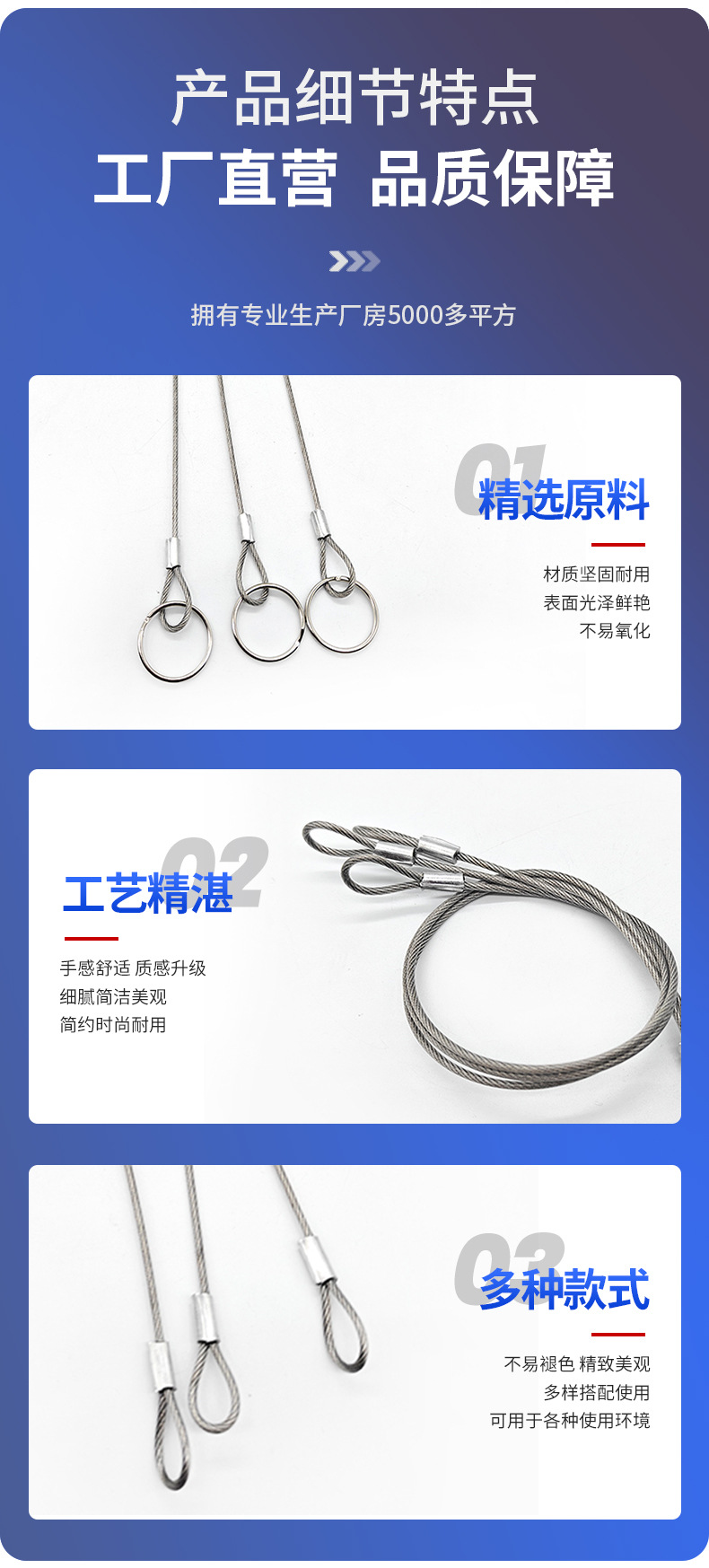 工場直販 ステンレス被覆鋼線ロープ 安全落下防止ロープ 照明吊り下げロープ 高強度圧縮アルミスリーブ