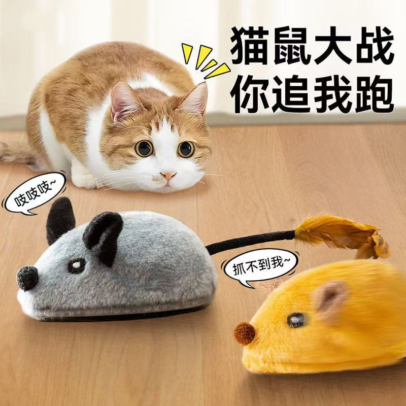 跨境爆款仿真老鼠自动遛猫躲猫猫互动自嗨宠物猫幼猫电动智能玩具