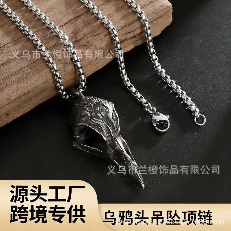 跨境热销temu北欧维京不锈钢雕花乌鸦吊坠欧美钛钢男士项坠饰品