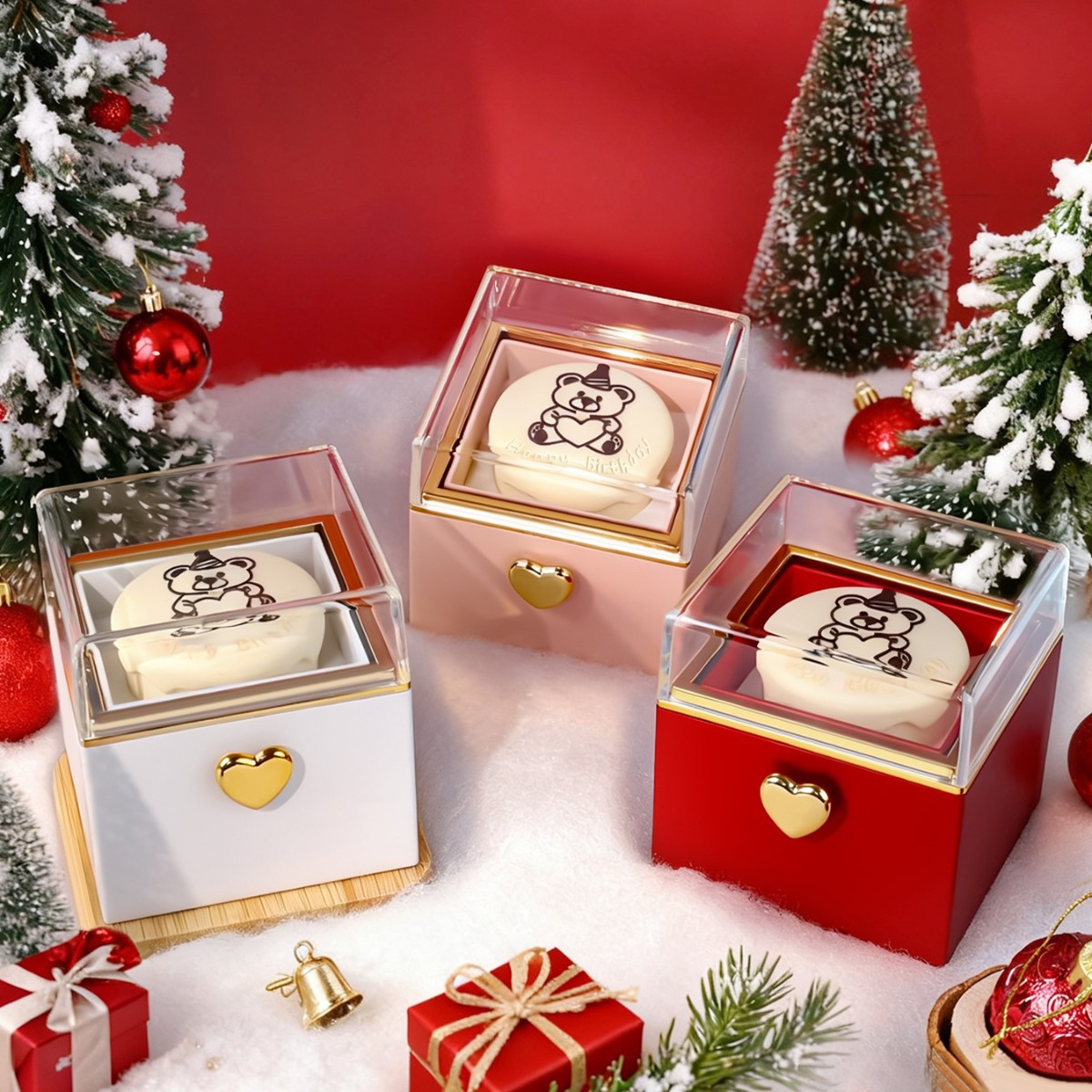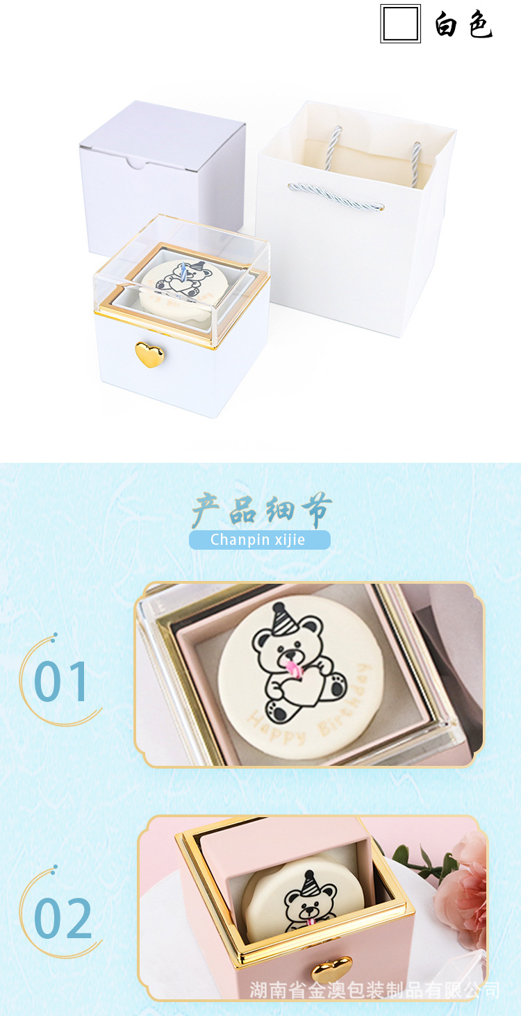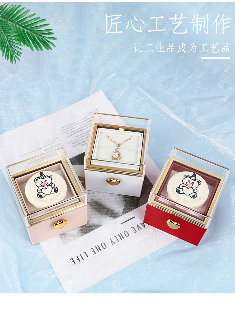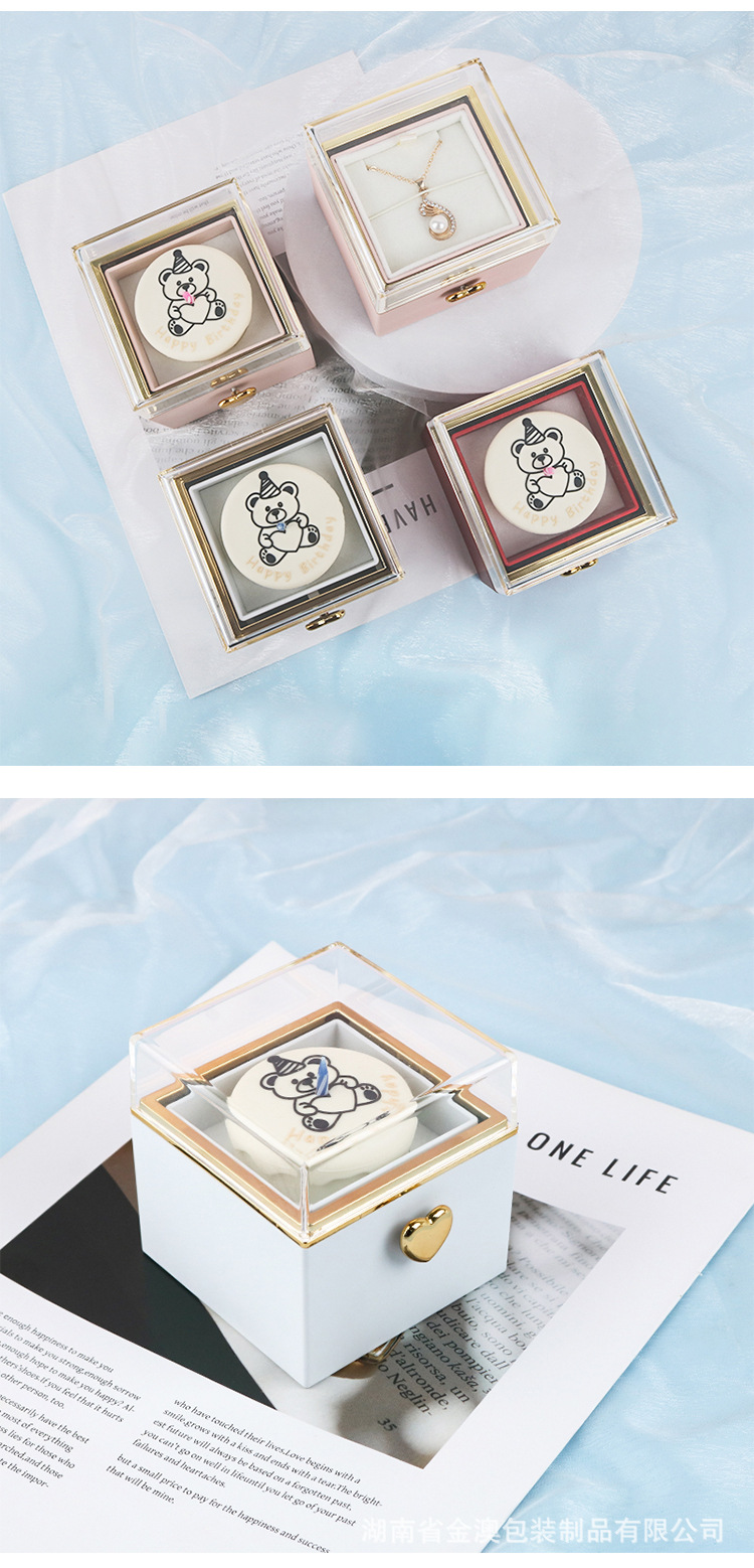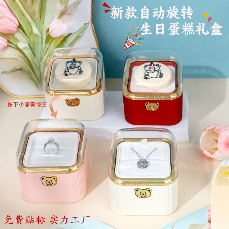 抖音同款小熊蛋糕自动翻转惊喜礼盒圆角亚克力旋转首饰盒工厂批发