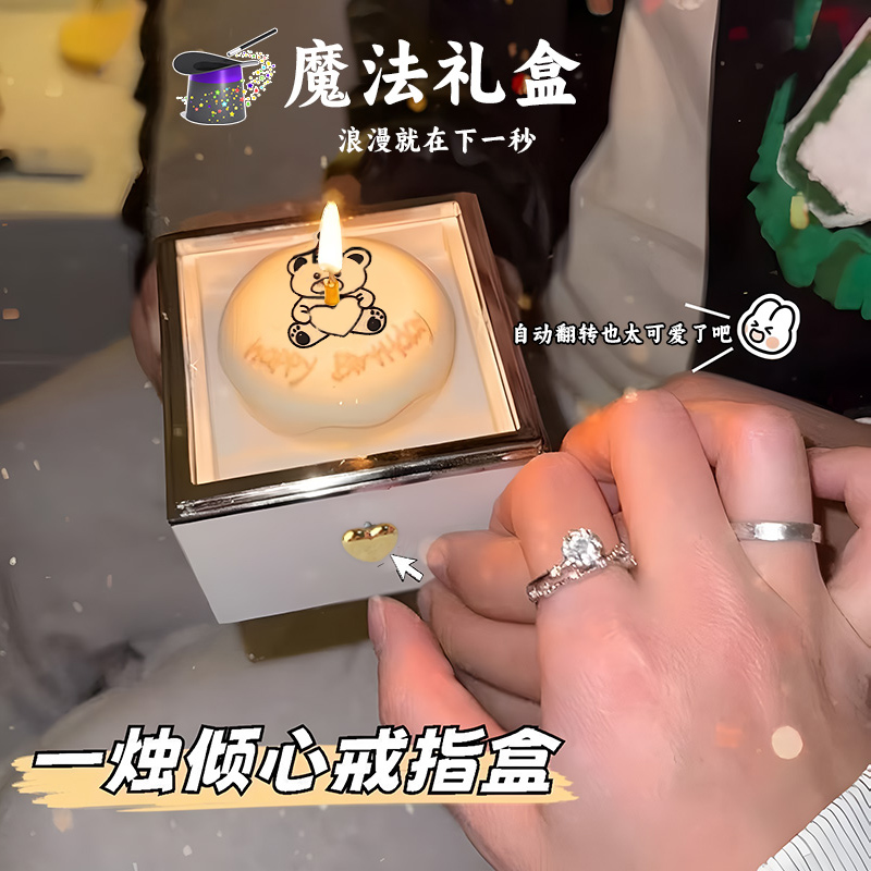キャンドル熊ケーキサプライズ箱反転誕生日プレゼント箱自動反転熊指輪アクセサリー箱