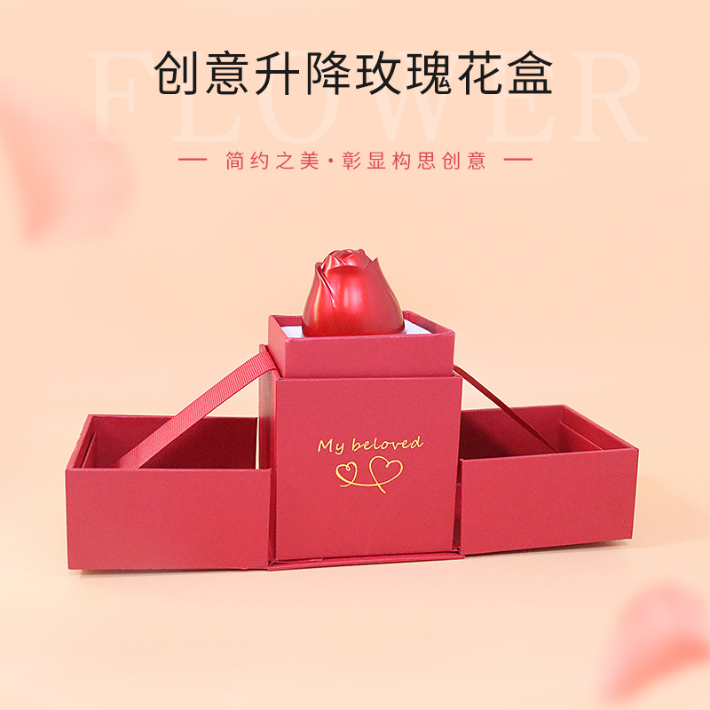 バレンタインデーメタルローズギフトボックスダブルオープンリフティングローズジュエリーボックスリングボックスジュエリー包装ボックス卸売