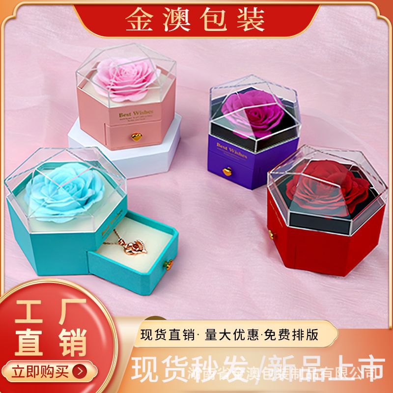 现货肥皂花亚克力抽屉盒首饰收纳盒戒指包装盒圣诞节情人节礼品盒