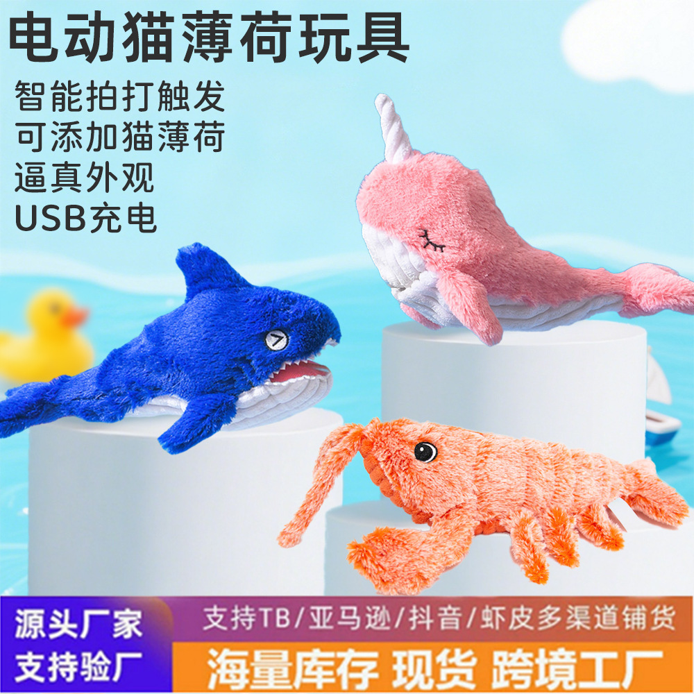 ペット重力ジャンプエビぬいぐるみusb充電シミュレーションクジラ電動猫犬ペット猫玩具
