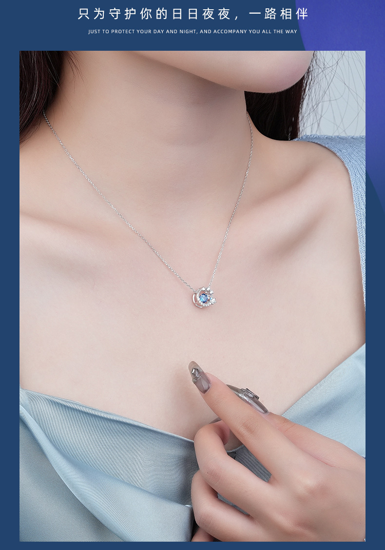 s925纯银众星捧月项链镶钻小众感锁骨饰品链厂家直销韩式清新
