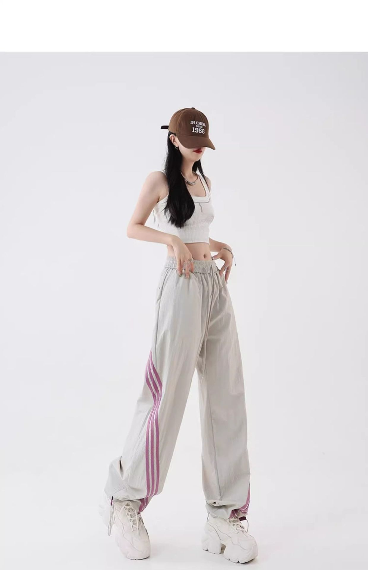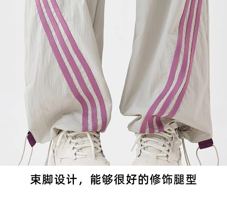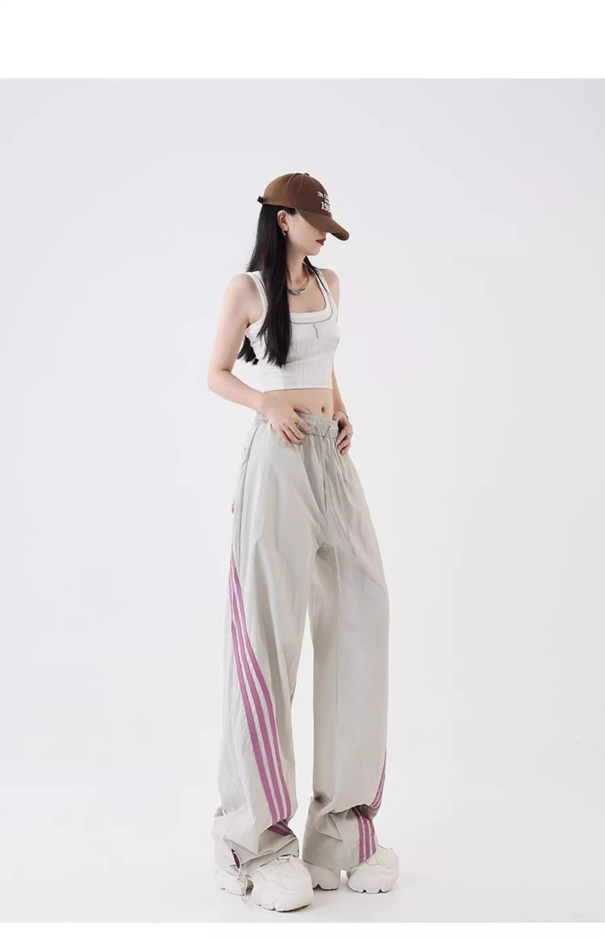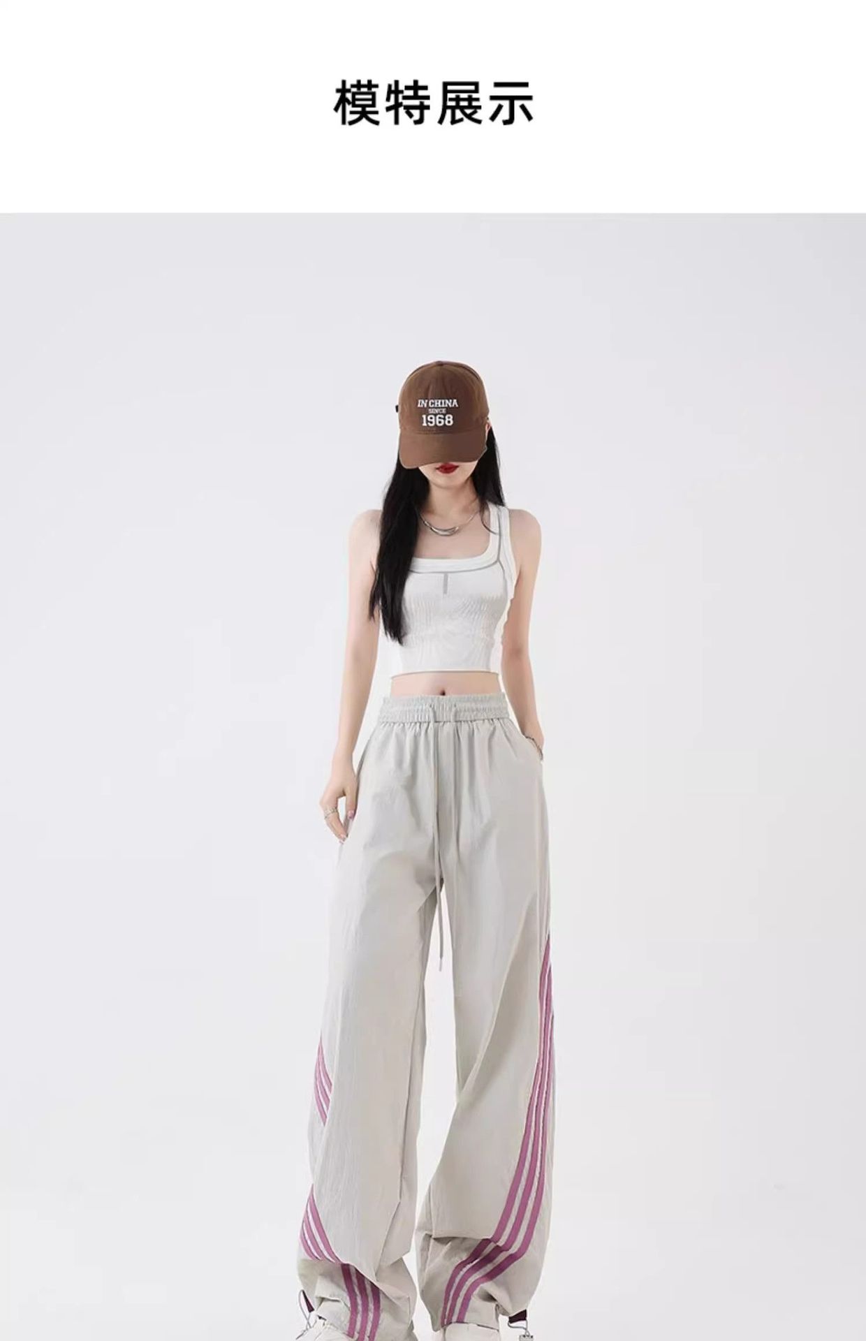 三条の鉄棒のスポーツズボンの女性のカジュアルな大きいサイズの2025夏の新型のゆったりしているストレートのストライプの速乾の広い足のズボンの子供
