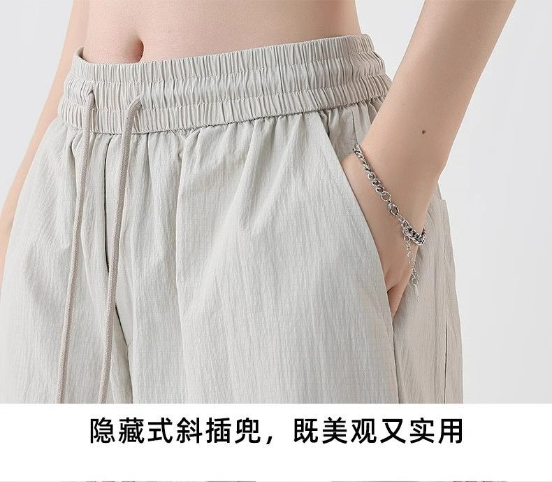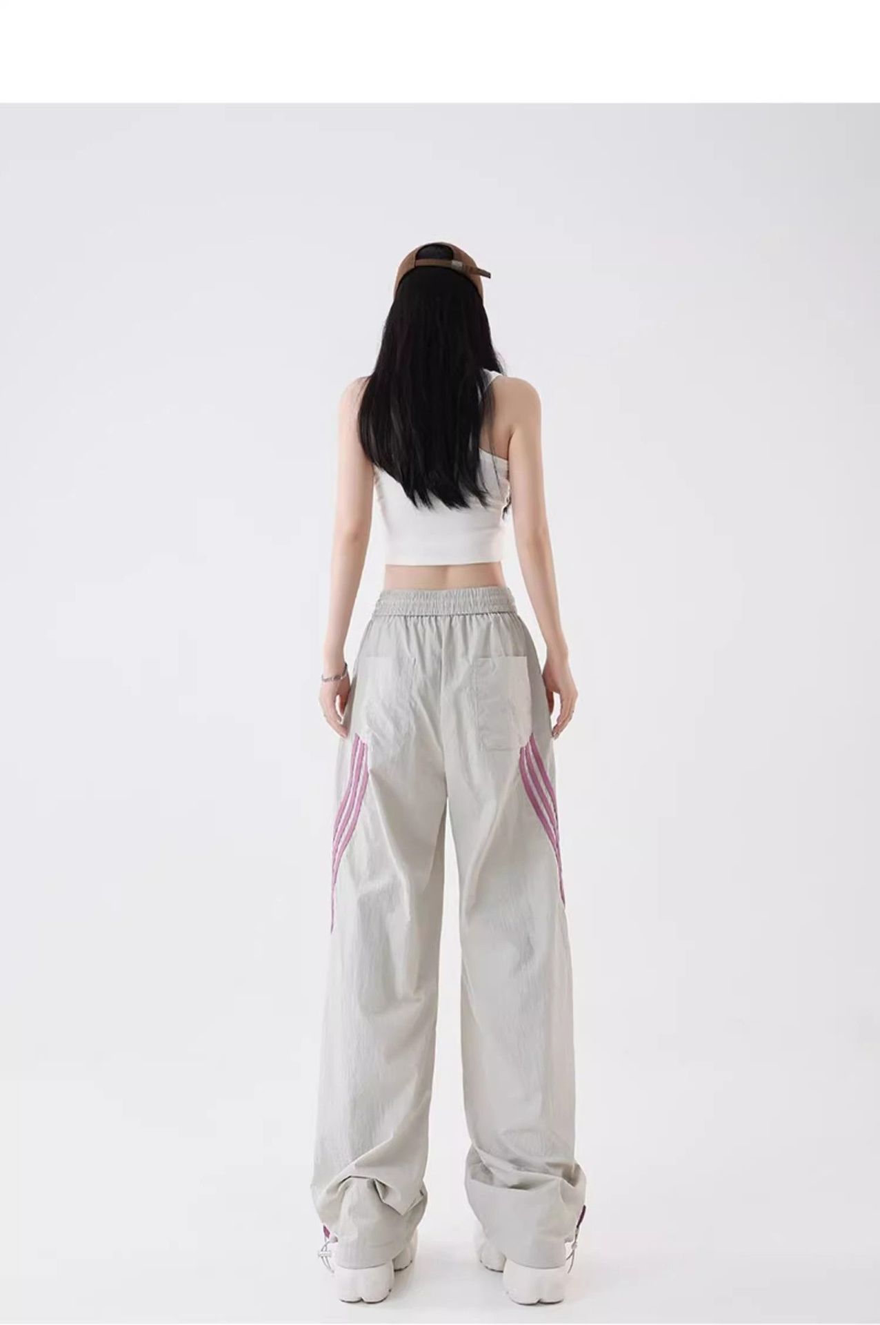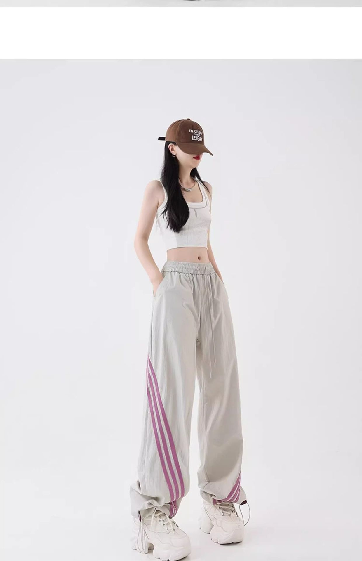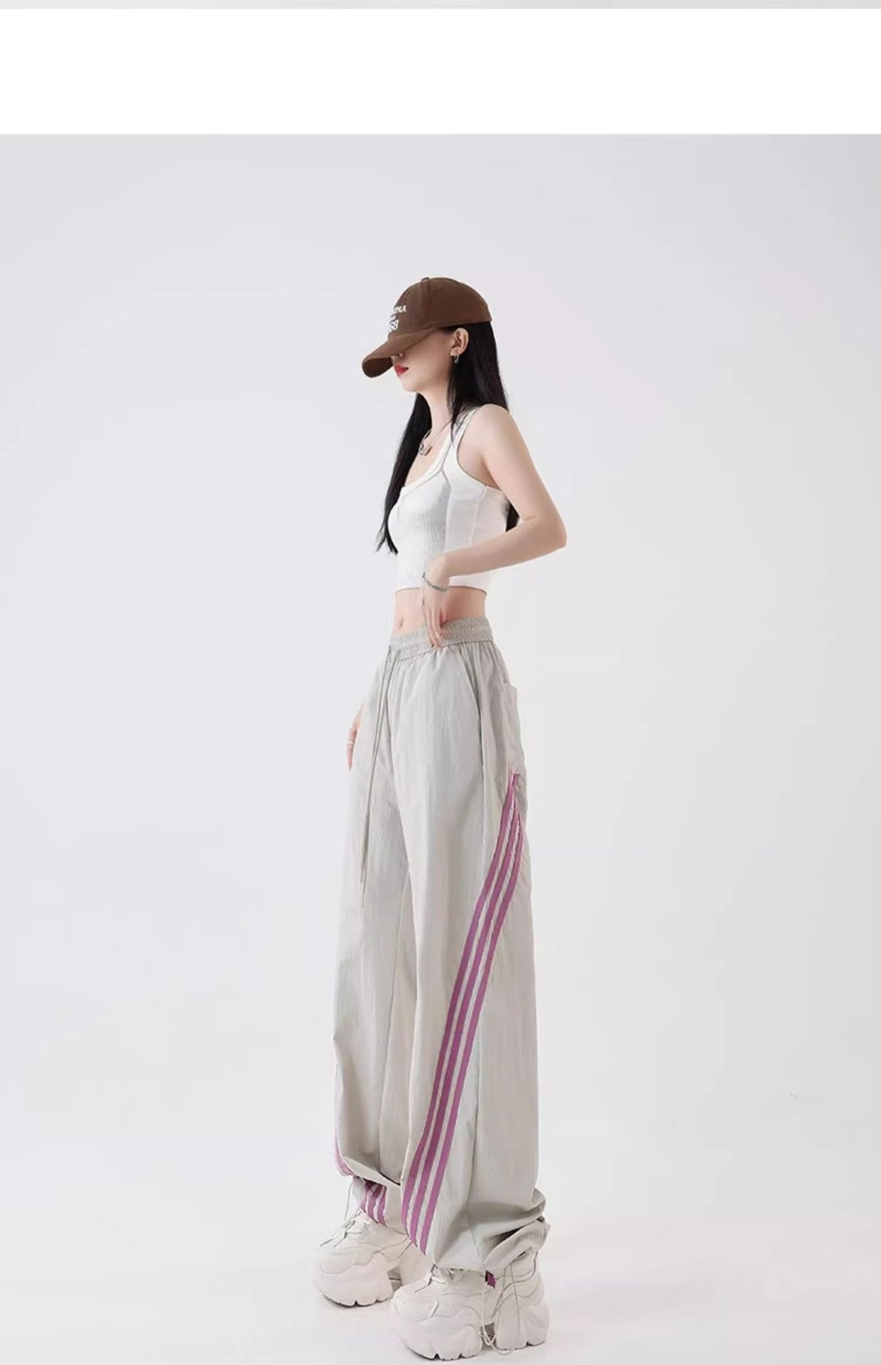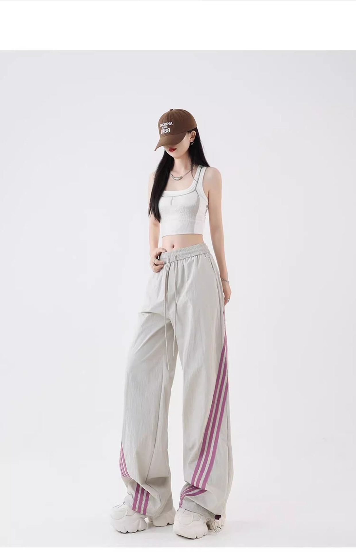 三条の鉄棒のスポーツズボンの女性のカジュアルな大きいサイズの2025夏の新型のゆったりしているストレートのストライプの速乾の広い足のズボンの子供