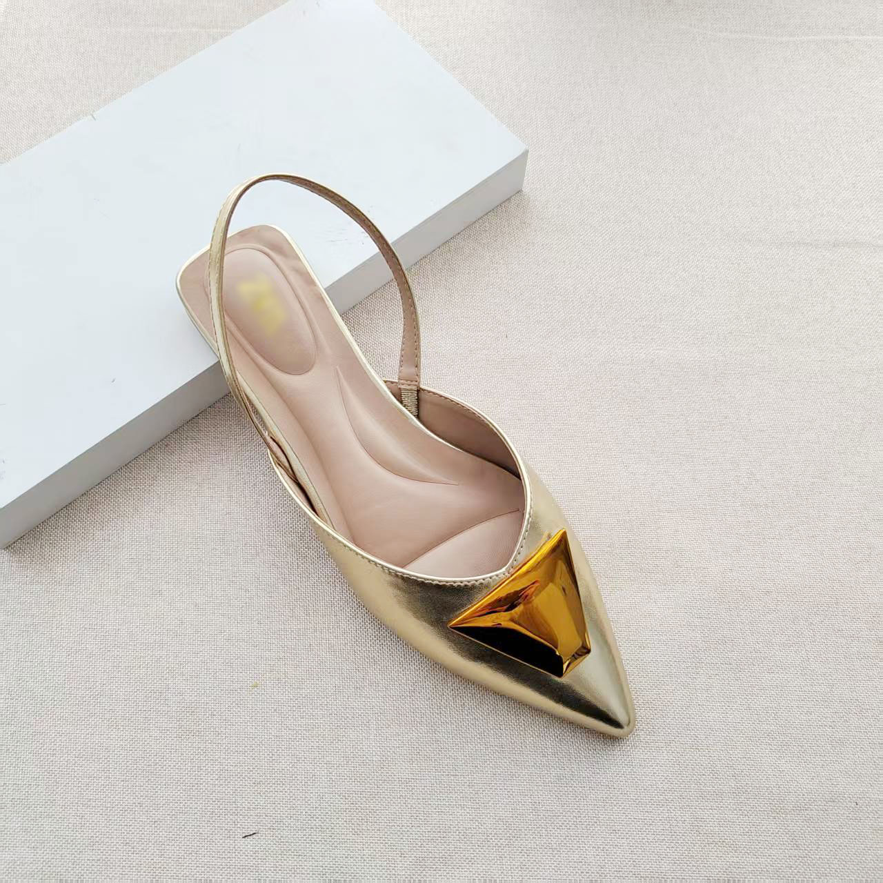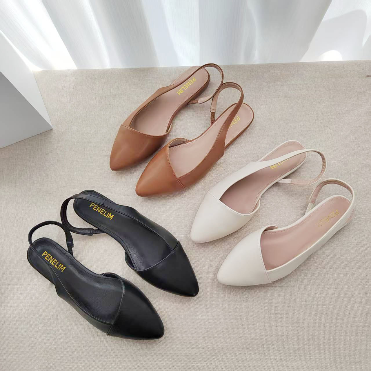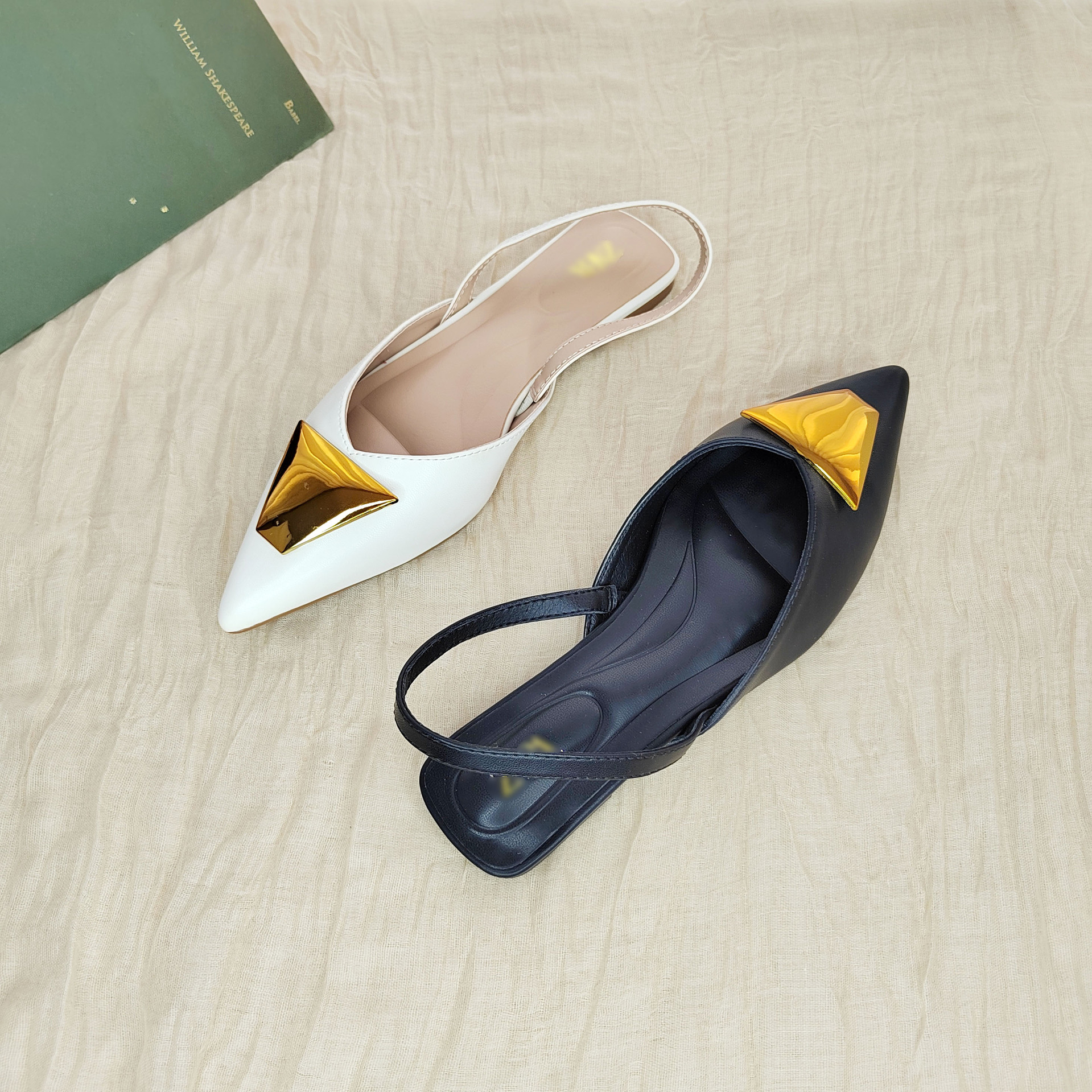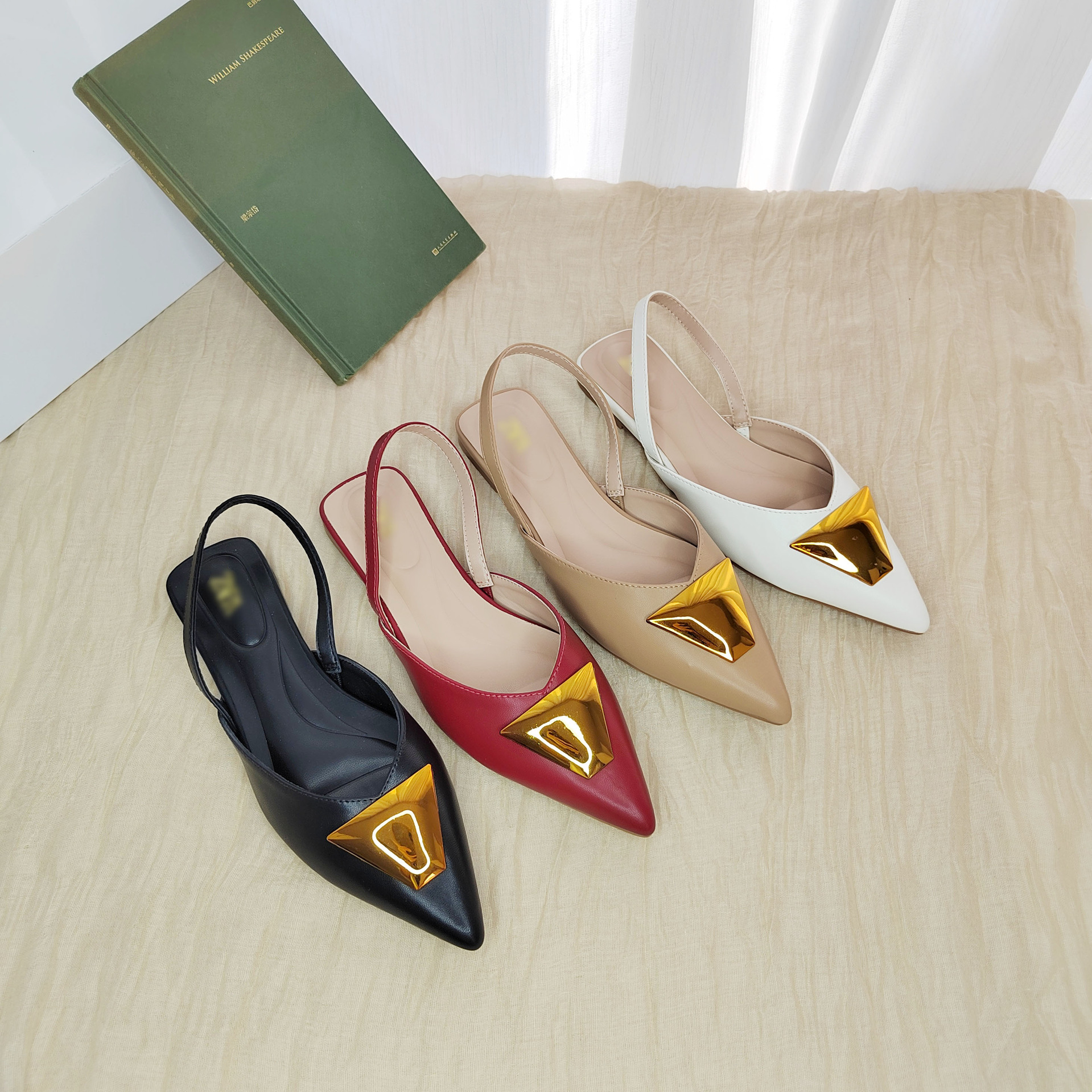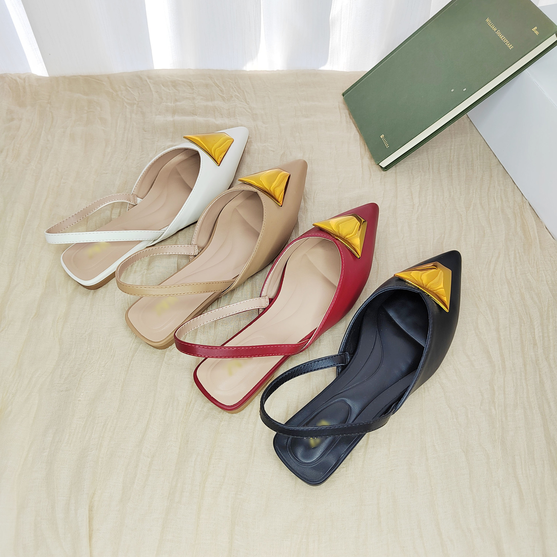 夏の外貿向けレディースシューズ、新作夏用ポインテッドトゥ、万能で優しいスタイル、フラットシューズ、フレンチスタイル、つま先が覆われたヒールストラップサンダル