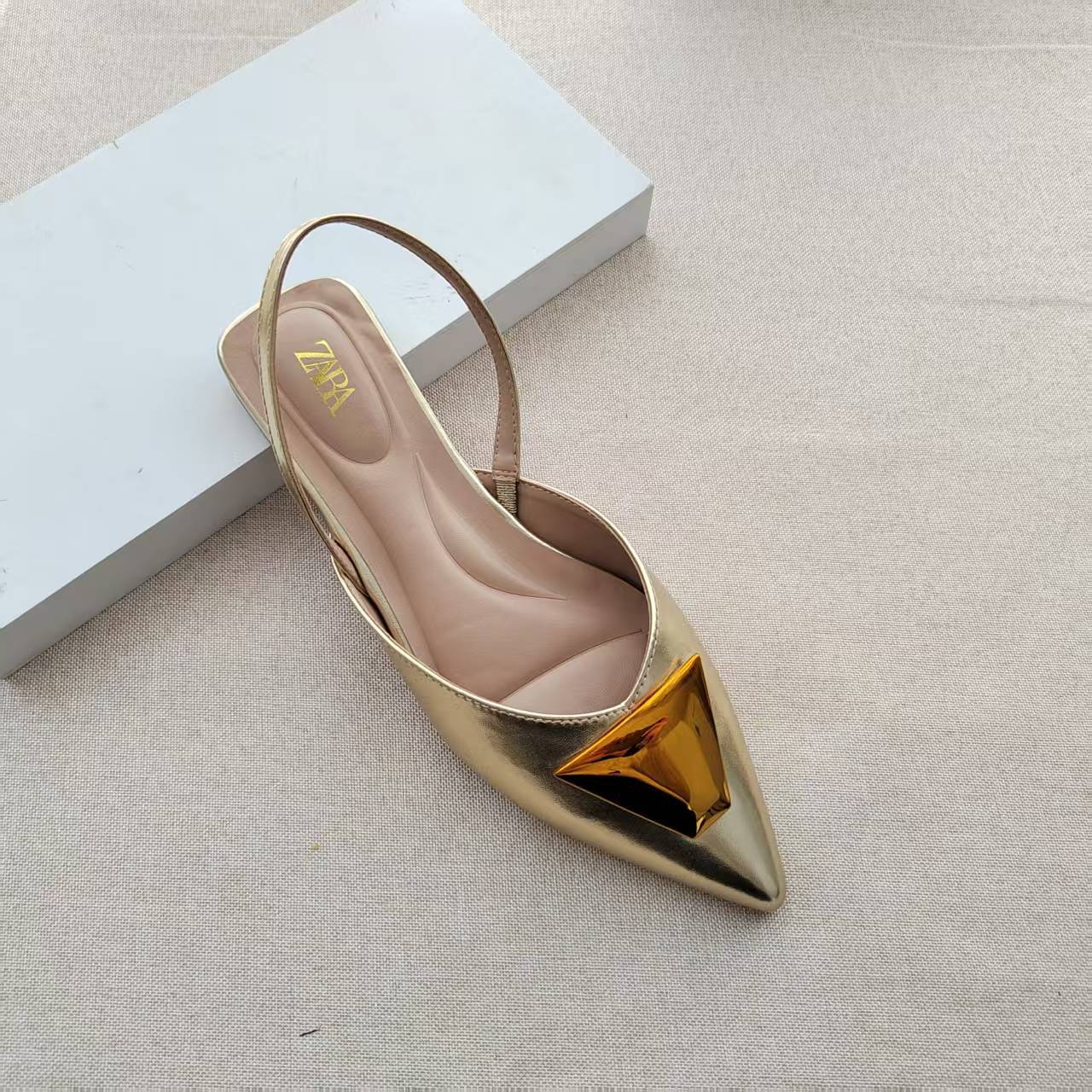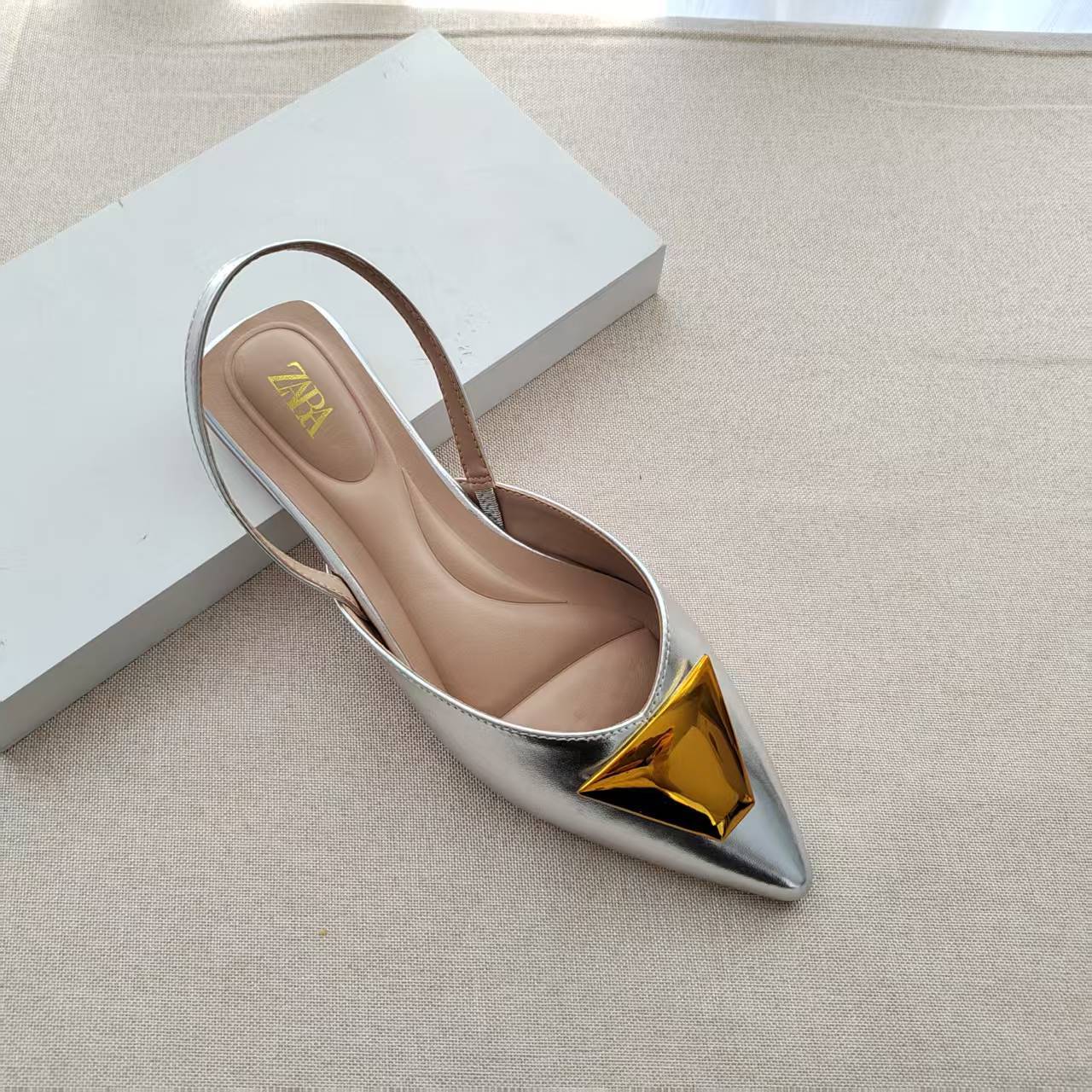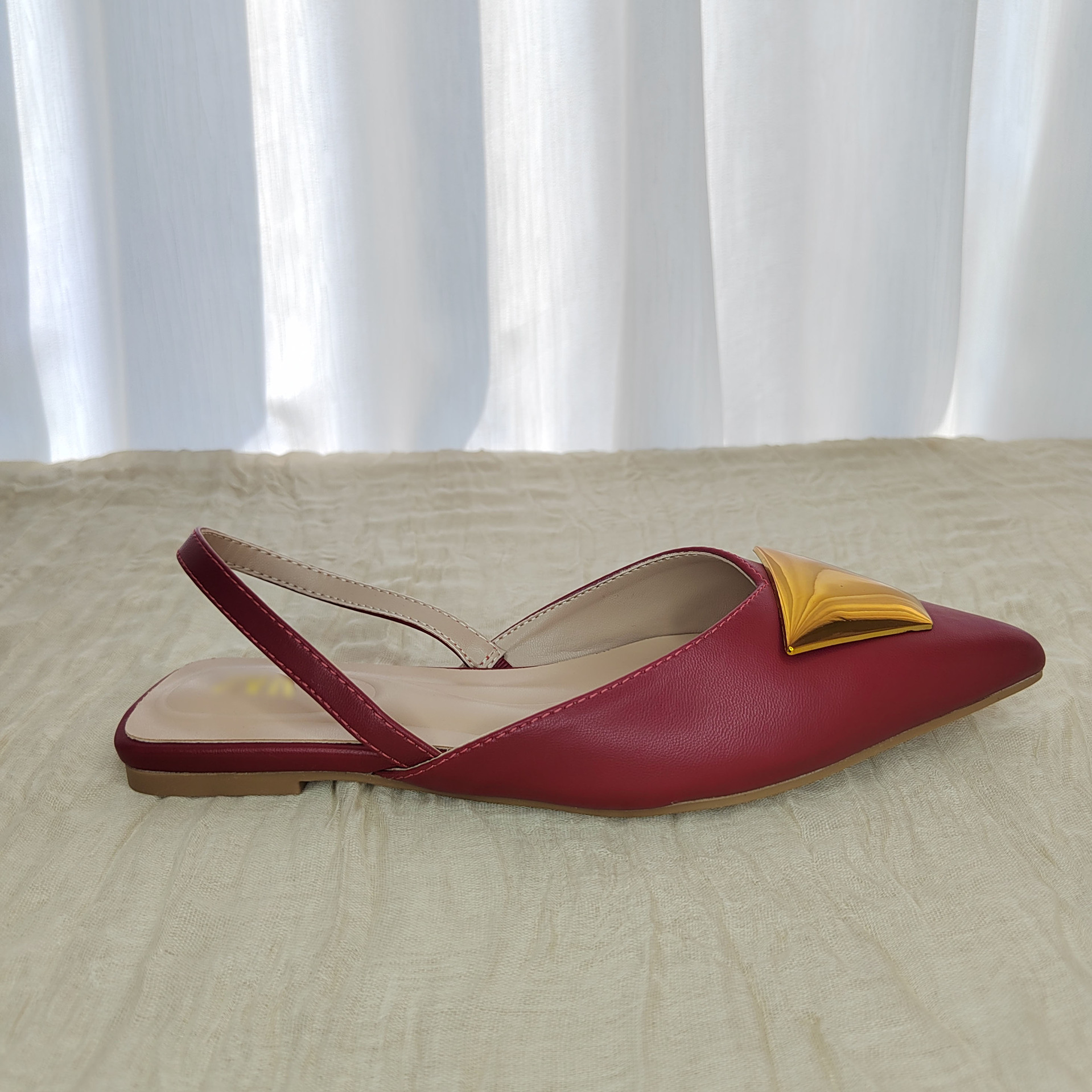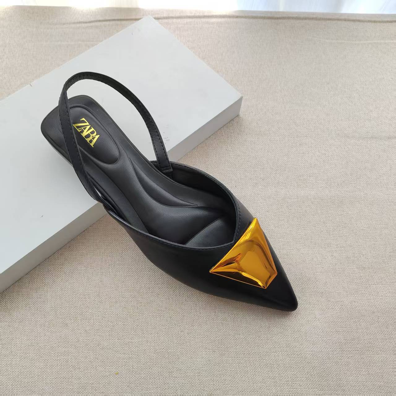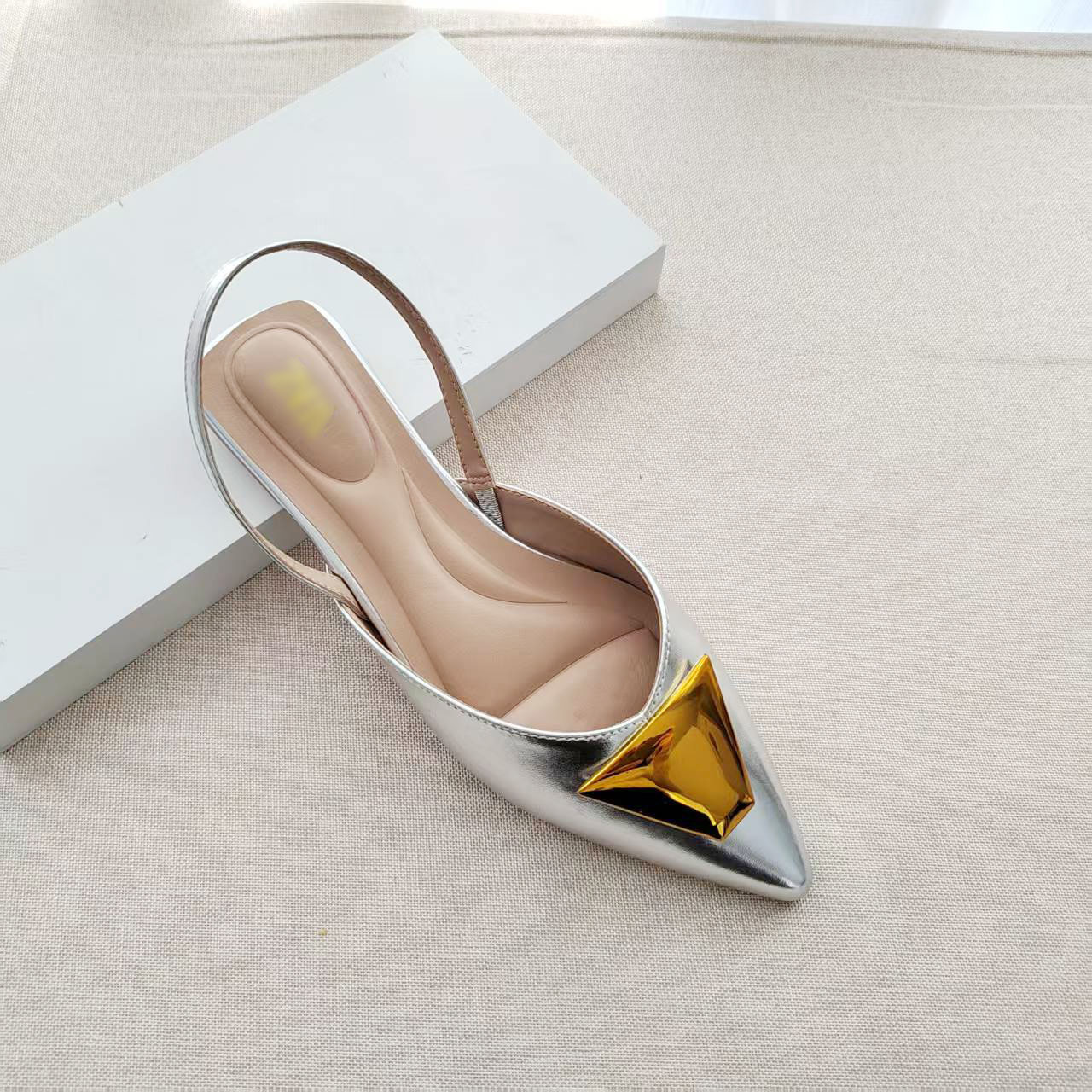 夏の外貿向けレディースシューズ、新作夏用ポインテッドトゥ、万能で優しいスタイル、フラットシューズ、フレンチスタイル、つま先が覆われたヒールストラップサンダル