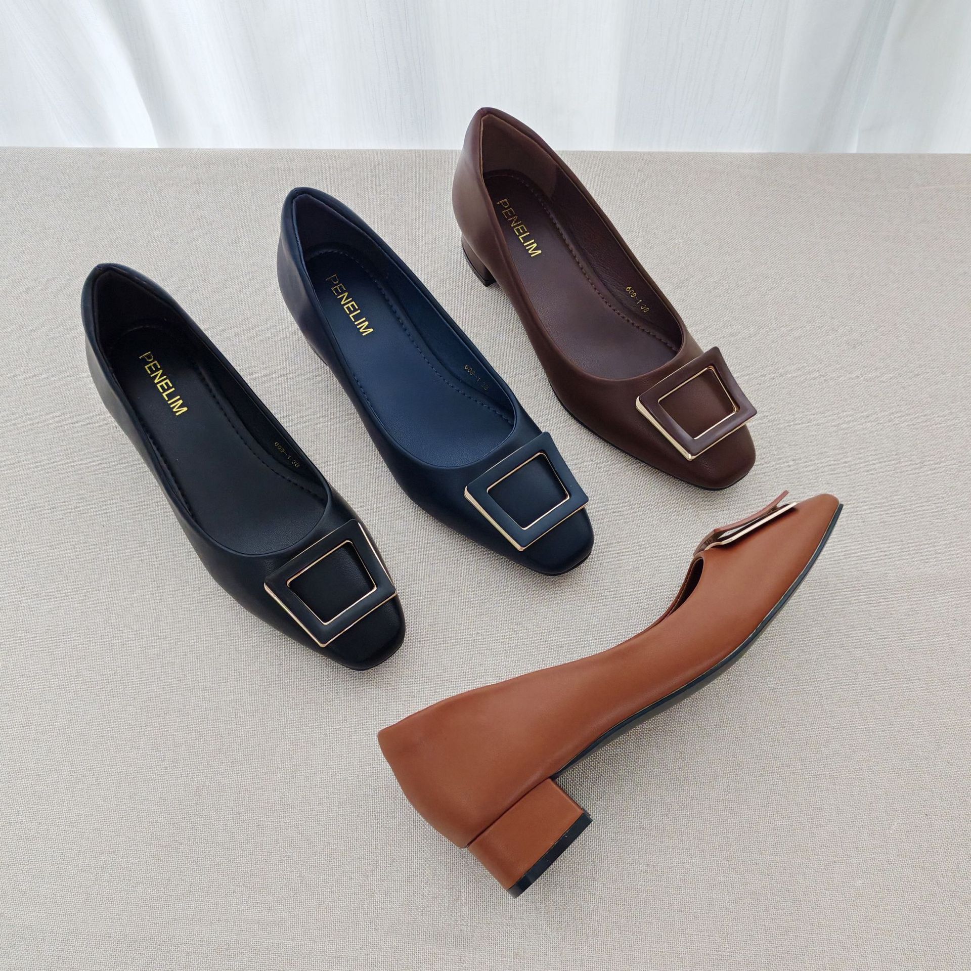 外国貿易ソフトレザーチャンキーヒール女性用新作春秋婦人靴ローヒール快適なソフトソール浅い口カジュアルワークシューズ女性用