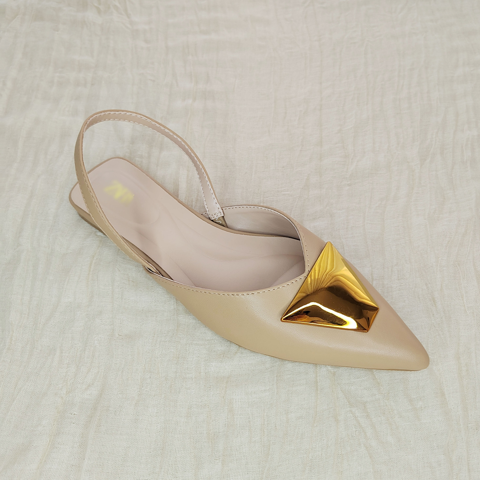 外贸新款夏季平底尖头凉鞋女时尚金属花朵饰扣平底鞋时尚外穿女鞋