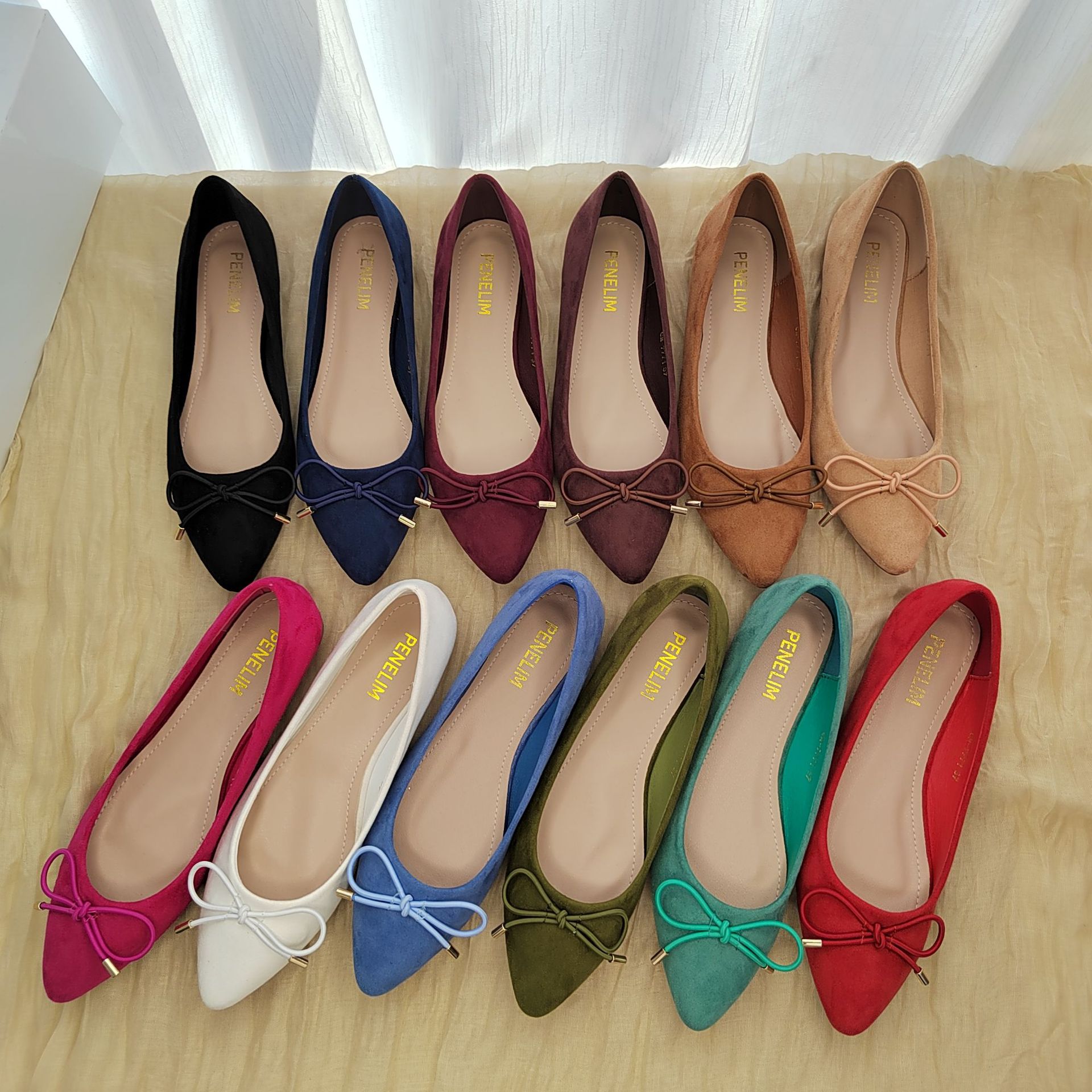 春秋の新作、蝶結び付きフラットシューズ、エレガントな浅口シングルシューズ、フレンチスタイルのポインテッドトゥ、柔らかいソールのバレエシューズ、厚底