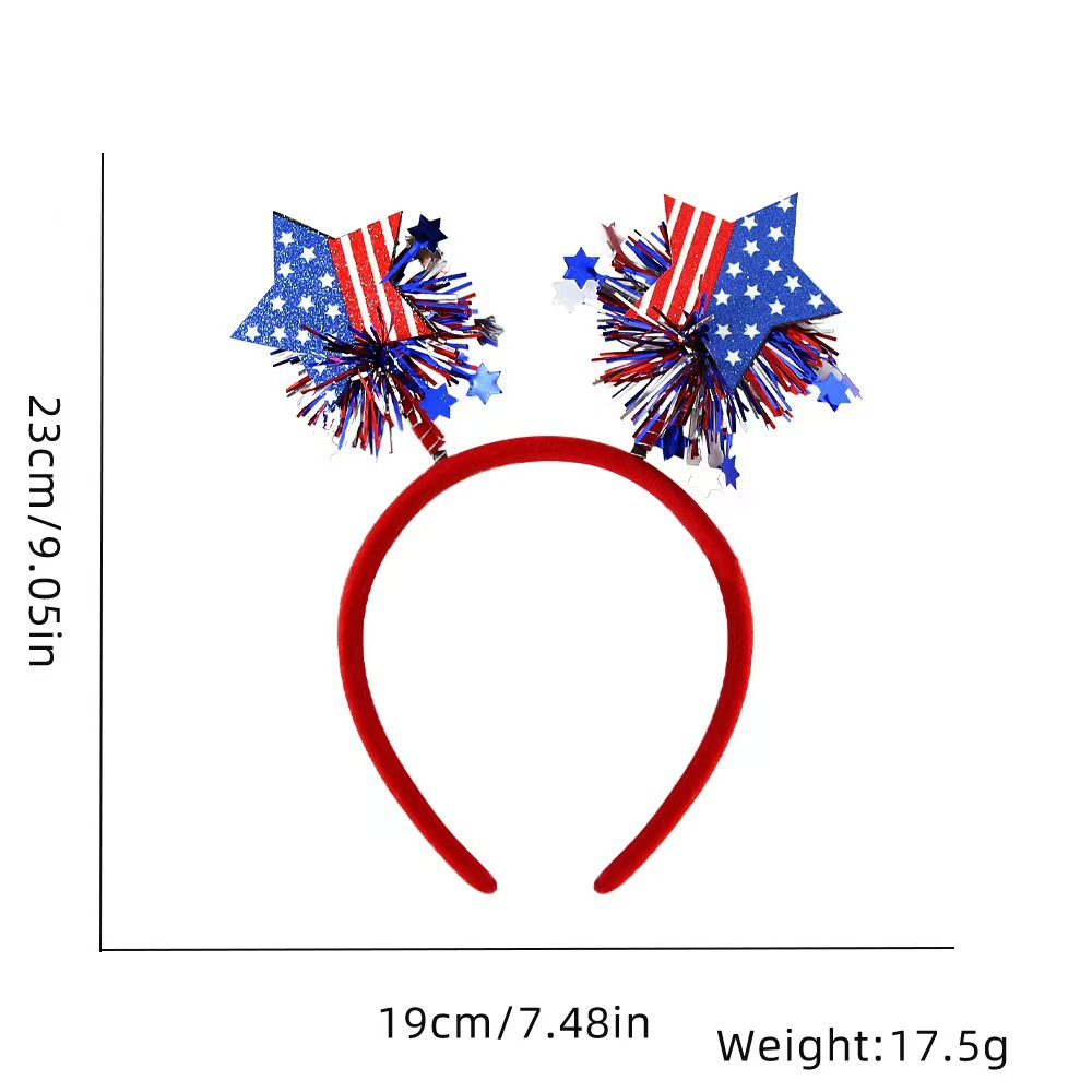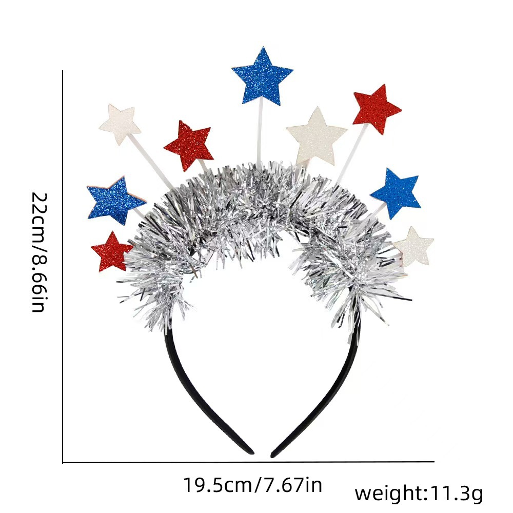 2025アメリカ独立日髪飾りフープ国慶節パーティー装飾赤白青五角星彩条流蘇頭箍