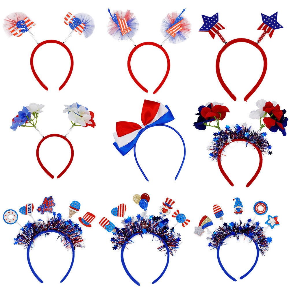 2025新型アメリカの髪飾り子供パーティーの装飾愛国パレードの赤いカチューシャ