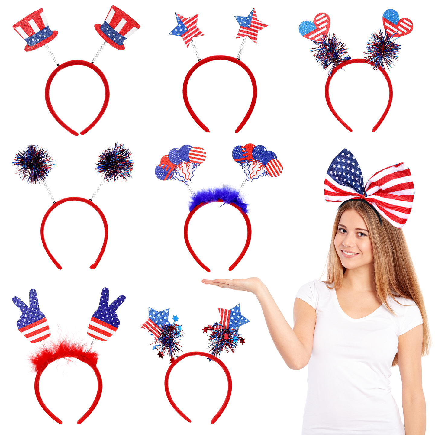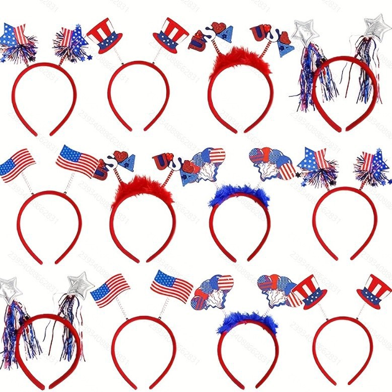 独立日装饰用品发箍美国国庆游行派对装扮道具蝴蝶结流苏头箍发扣