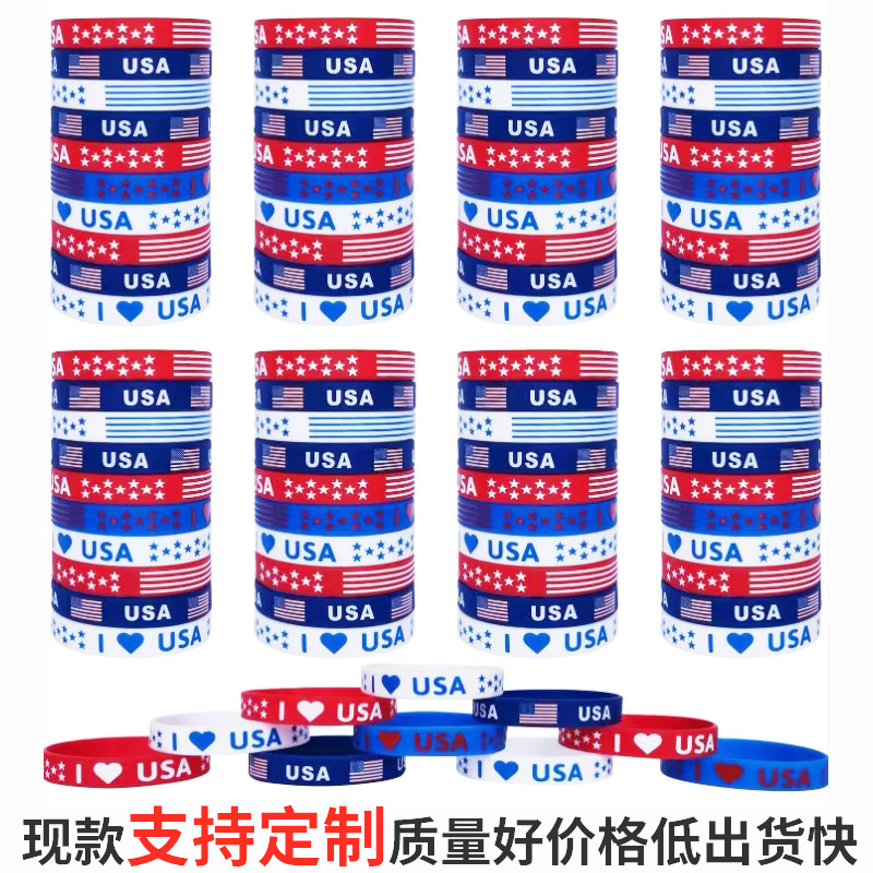 国境を越えたアメリカ国旗独立記念日記念パーティー印刷ロゴパターン凹凸彫刻テキストスポーツシリコンブレスレット