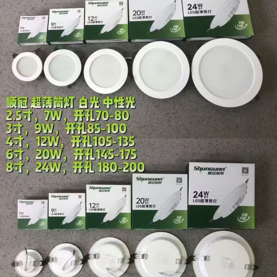 顺冠LED筒灯客厅天花灯 7W12W20瓦商场酒店工程超薄一体化嵌入式