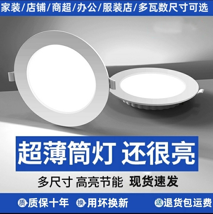 led超薄筒灯开孔7公分2.5寸4寸6寸5瓦孔灯吊顶24w商用嵌入式灯具