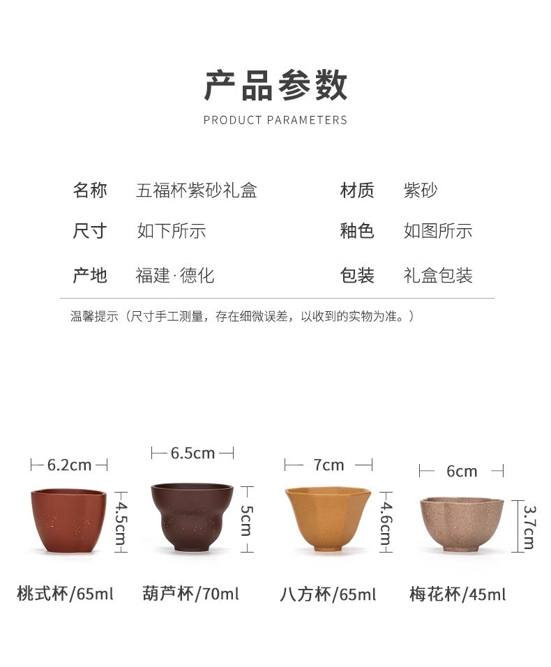 五福紫砂カップ,五福紫土カップ+白茶,五大窯+急須,五福紫砂カップ + 手作りの花のアロマセラピー,武昌カップ
