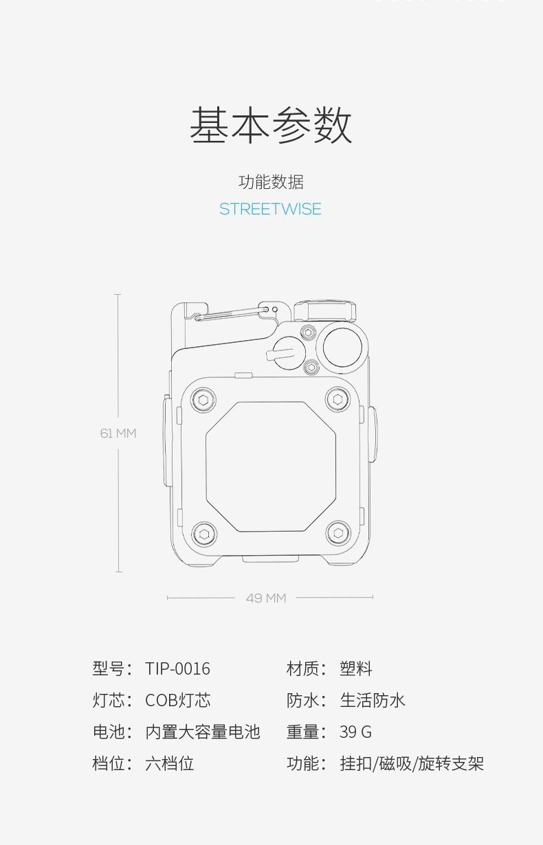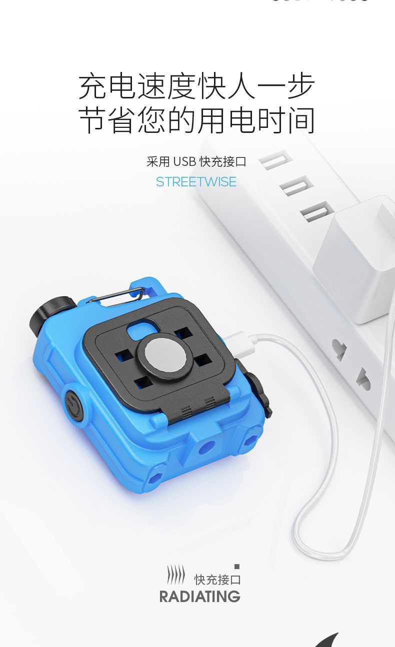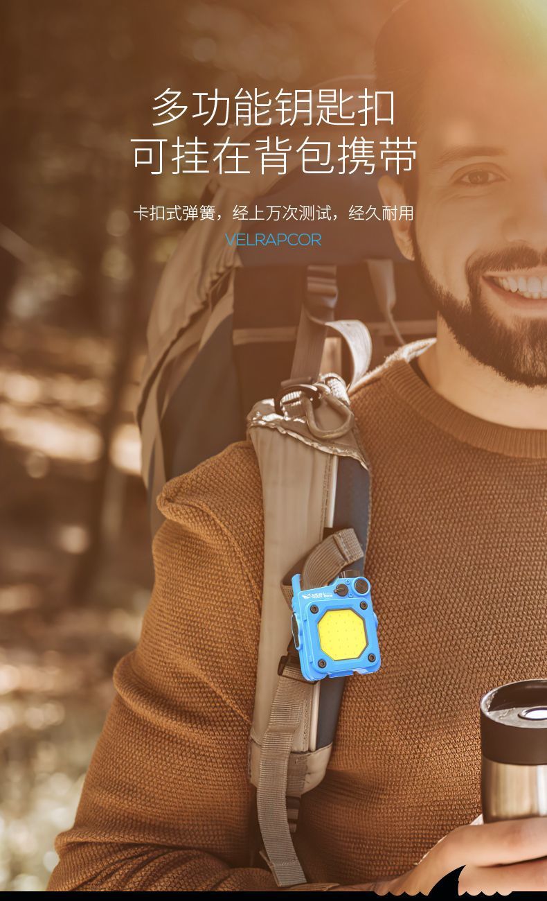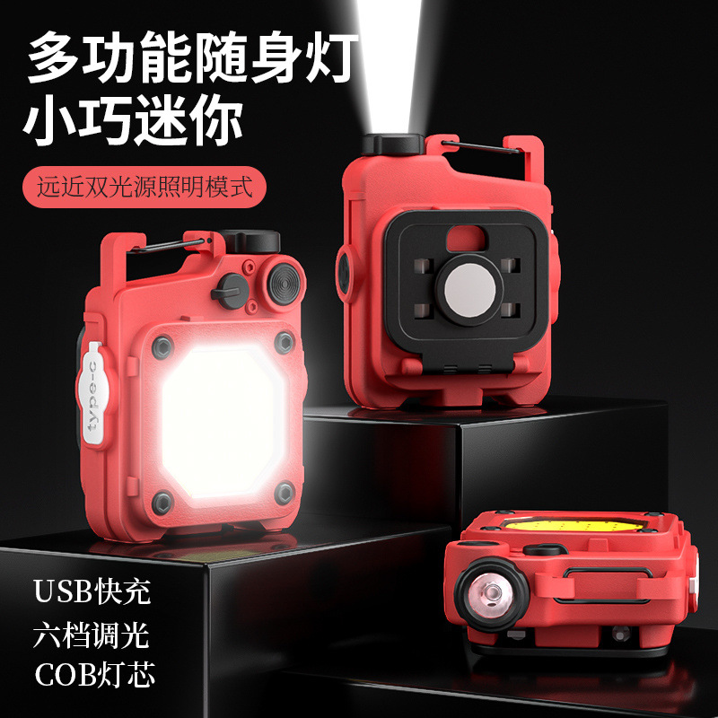 户外带磁吸工作灯迷你钥匙扣灯多档调节随身照明COB大泛光手电筒