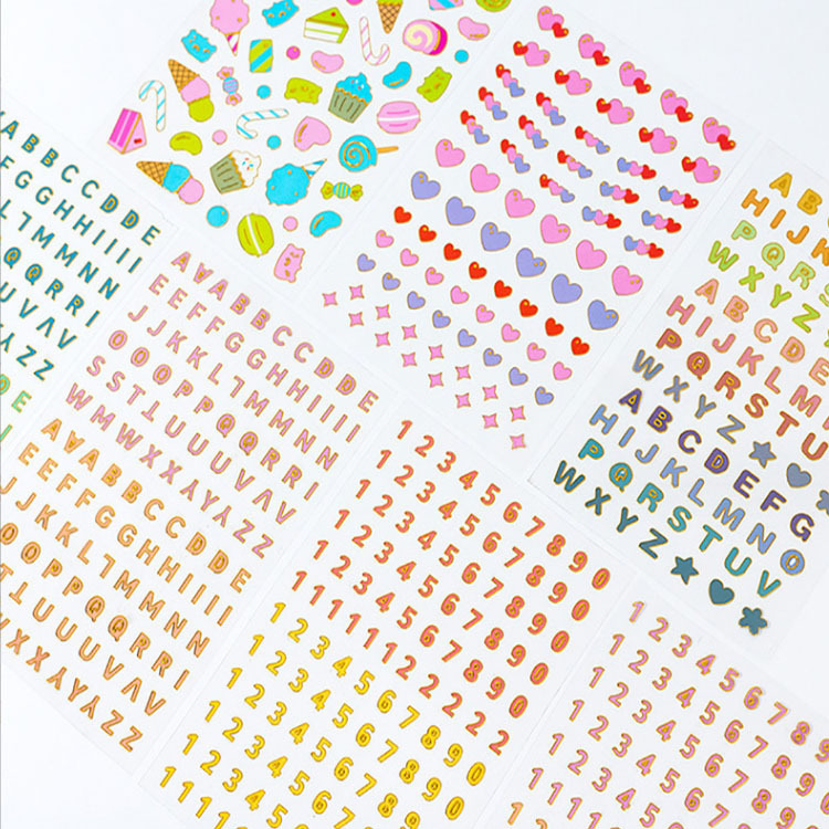韓国文具 ゴールドエッジ 英語文字・数字ステッカー 漫画風 透明 DIY ハンドブック用 カラフルデコレーションステッカー