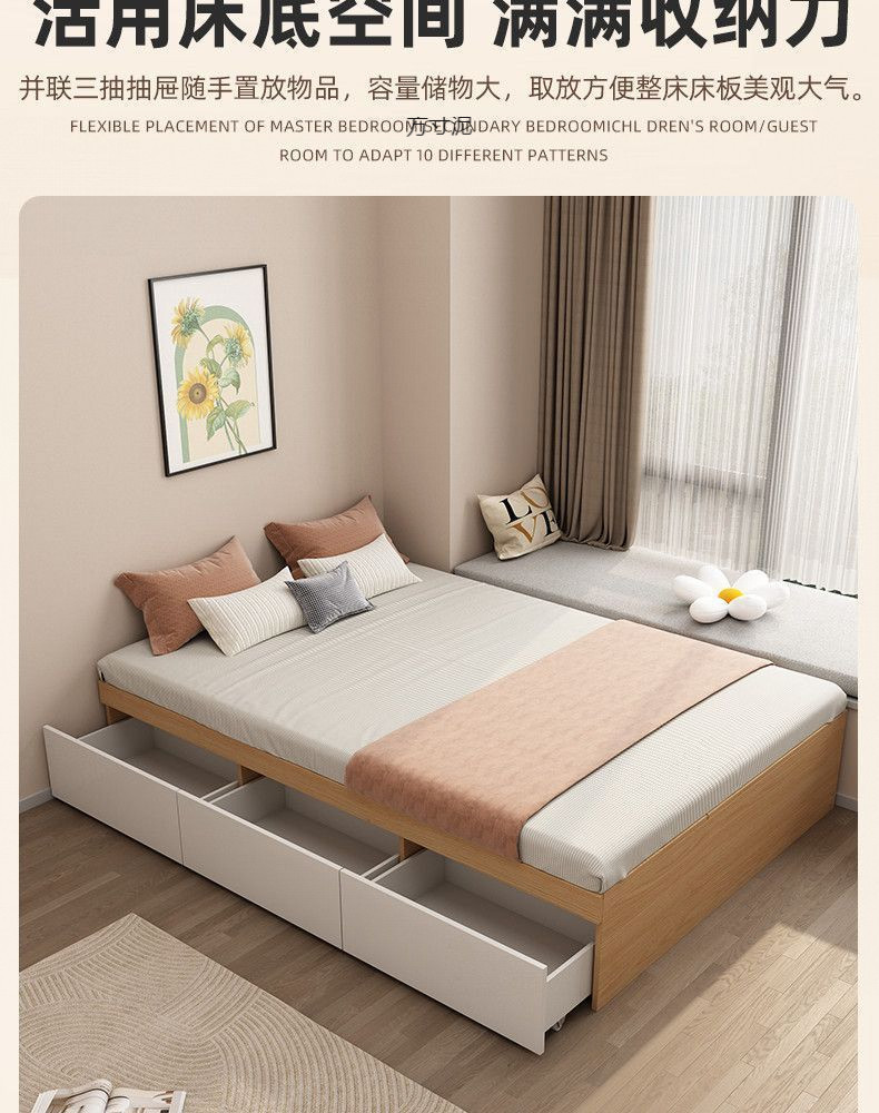 実木ベッド現代シンプルダブルベッドベッドベッドなし収納ベッド床床畳シングルベッドキャビネット一体卸売り